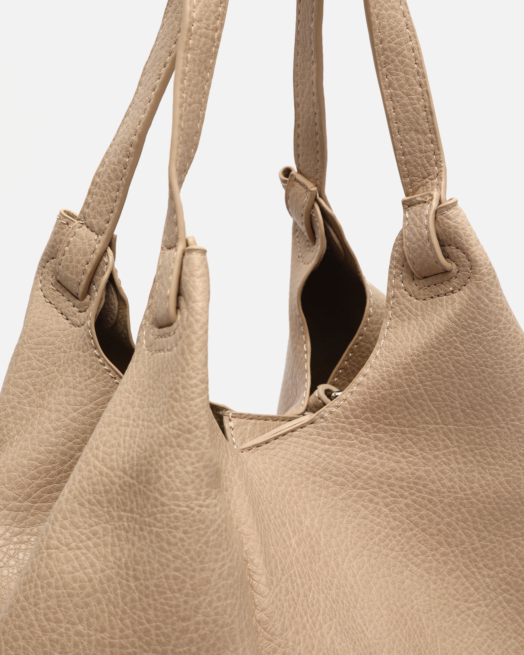 I suoi manici corti consentono di portarla comodamente a spalla, mentre la tracolla removibile ti dà la libertà di indossarla a tracolla quando ne hai bisogno. All'interno, ha un ampio scomparto principale e una pratica tasca rimovibile con chiusura a zip, perfetta anche da usare separatamente per tenere le tue cose organizzate e protette.