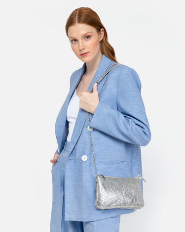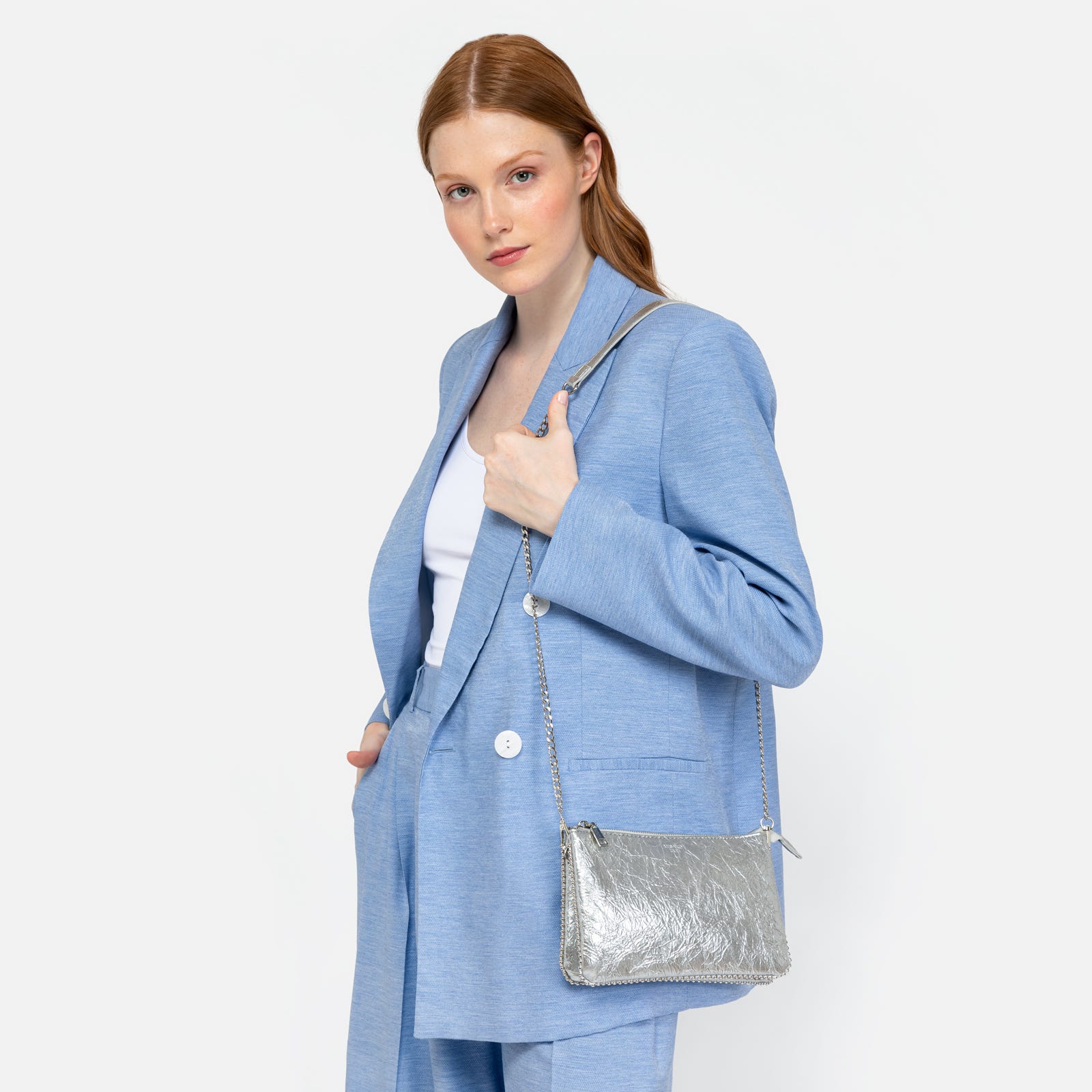La borsa a tracolla Boly di Misako è molto più di un accessorio: fa la differenza in ogni occasione. Con un formato sottile e dettagli argentati che corrono lungo i bordi, offre una finitura sofisticata e contemporanea.