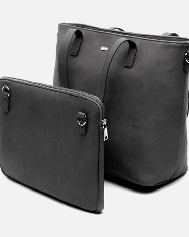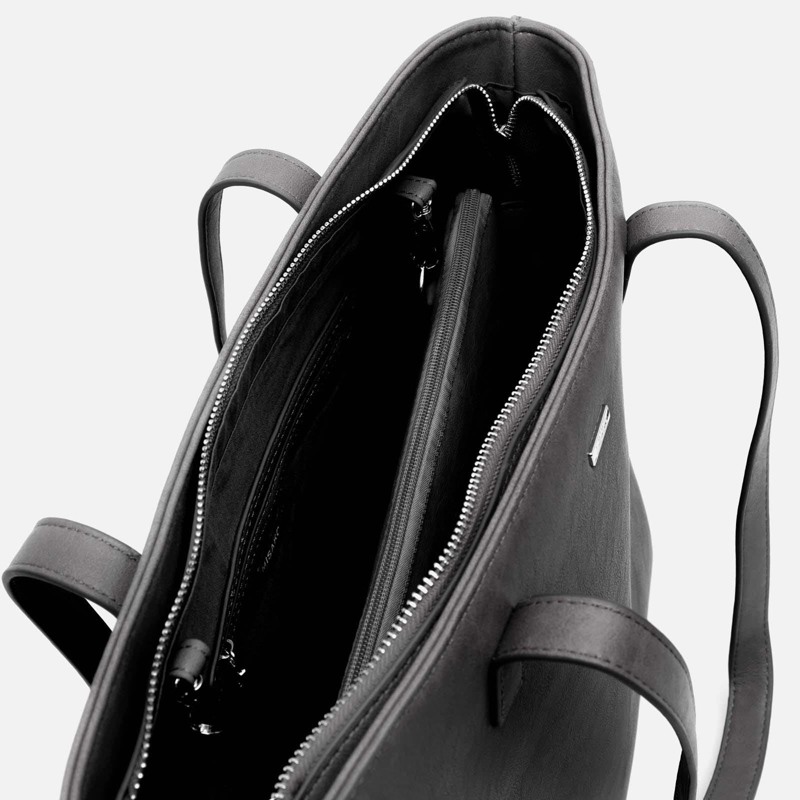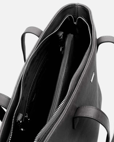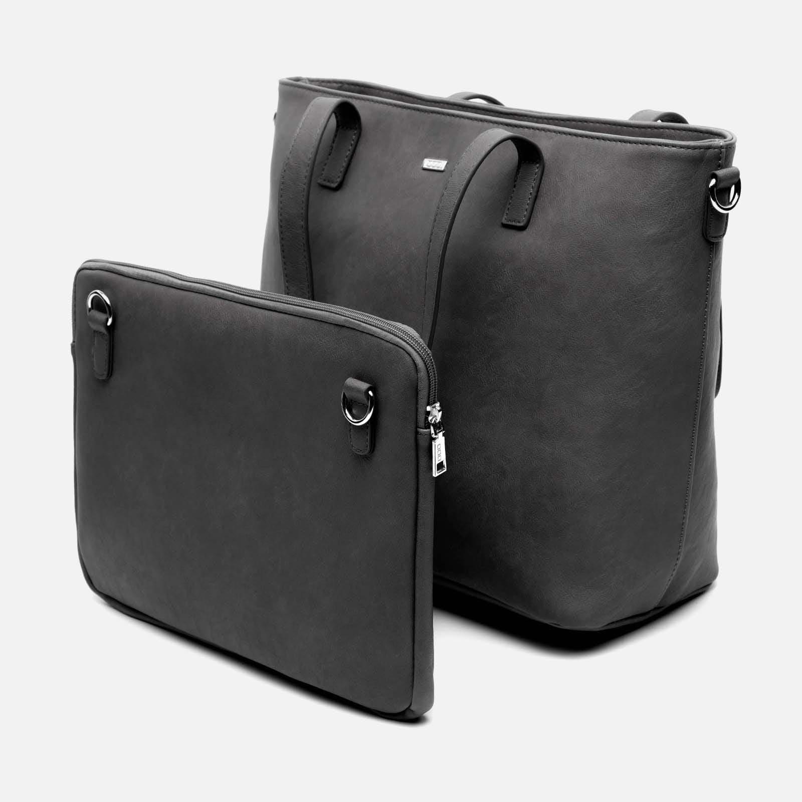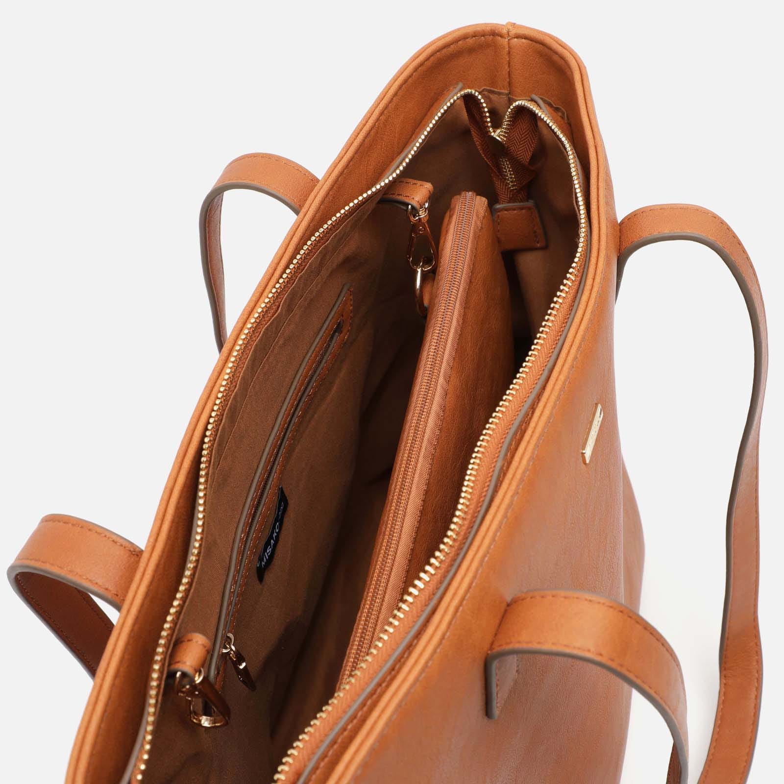 Diversi by Misako è la borsa shopper per computer che unisce eleganza e versatilità in un unico design. Realizzata in un elegante effetto pelle, presenta un interno spazioso, con una tasca con zip per tenere in ordine gli oggetti più piccoli.