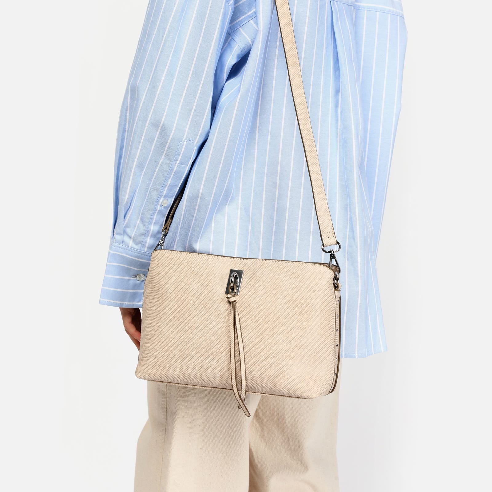 Piccola, classica, versatile e funzionale. La borsa Engri di Misako è l'accessorio perfetto: senza tempo, dal design accurato e in grado di abbinarsi a tutto. Realizzata con materiali resistenti e di alta qualità, presenta uno scomparto principale con chiusura a zip per una maggiore sicurezza e una tasca interna ideale per riporre i piccoli oggetti. La tracolla regolabile permette di portarla comodamente sul corpo o a tracolla, adattandosi al proprio stile e alle proprie abitudini. I dettagli decorativi con borchie e la minuteria metallica riflettono l'attento processo di sartoria e aggiungono un tocco distintivo al design.