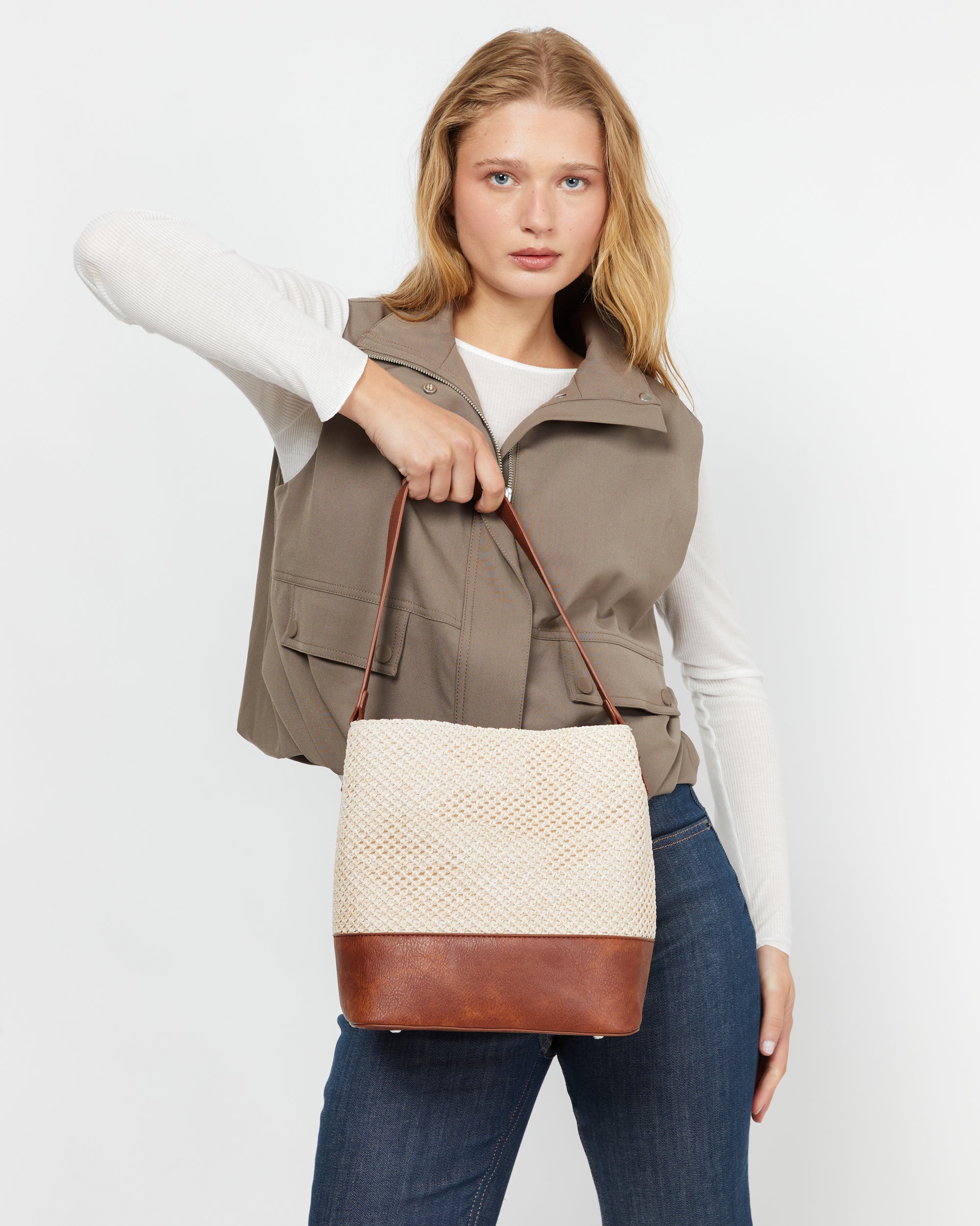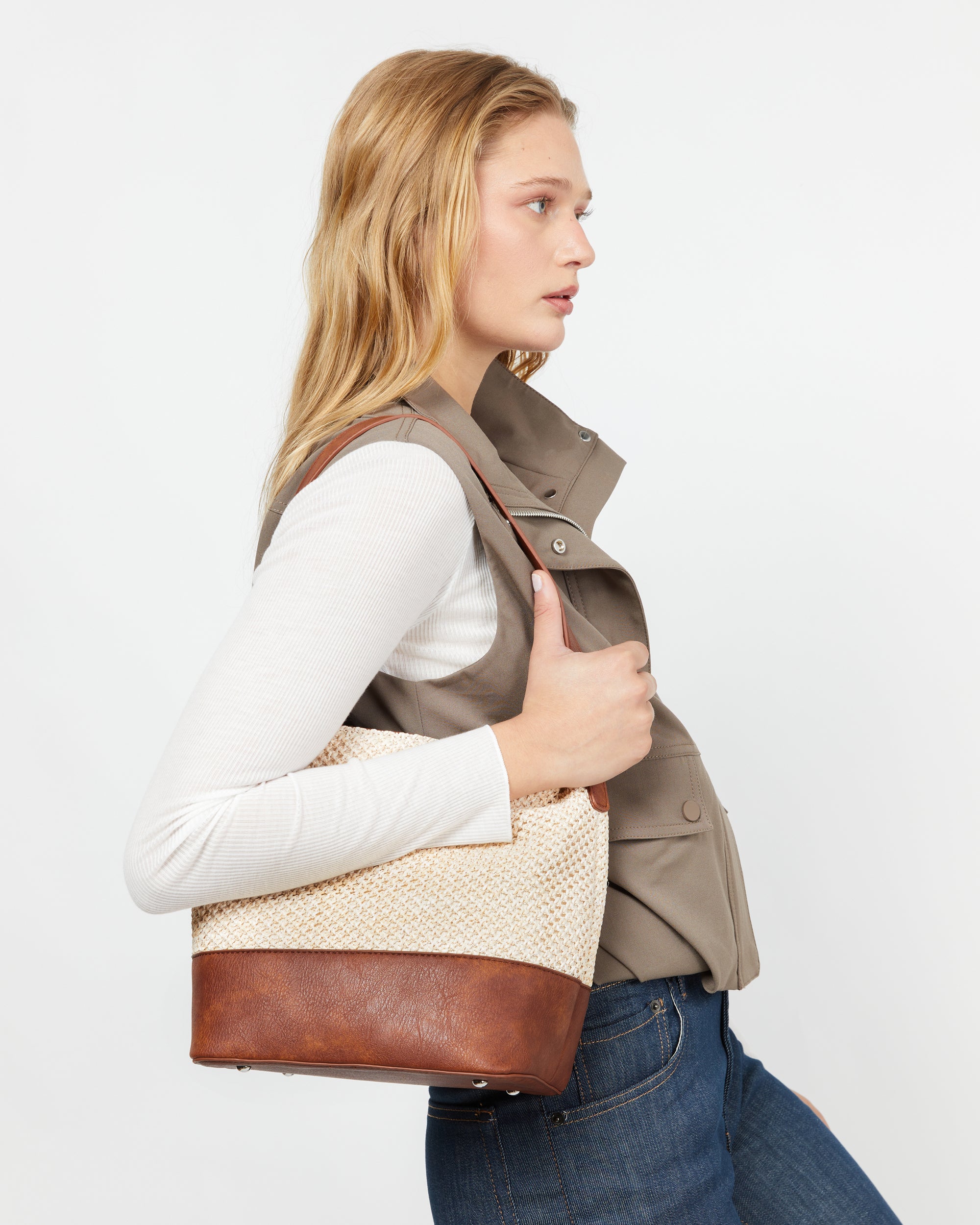 Esteni borsa a spalla piccola effetto rafia con tracolla rimovibile di Misako