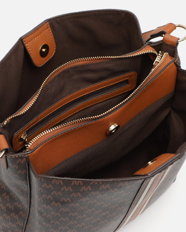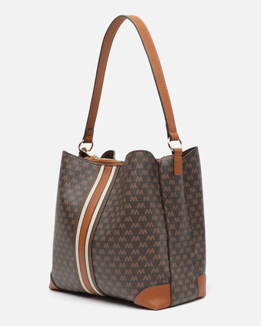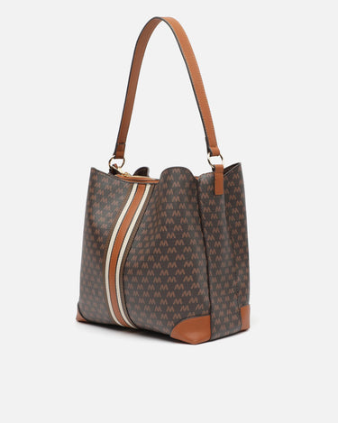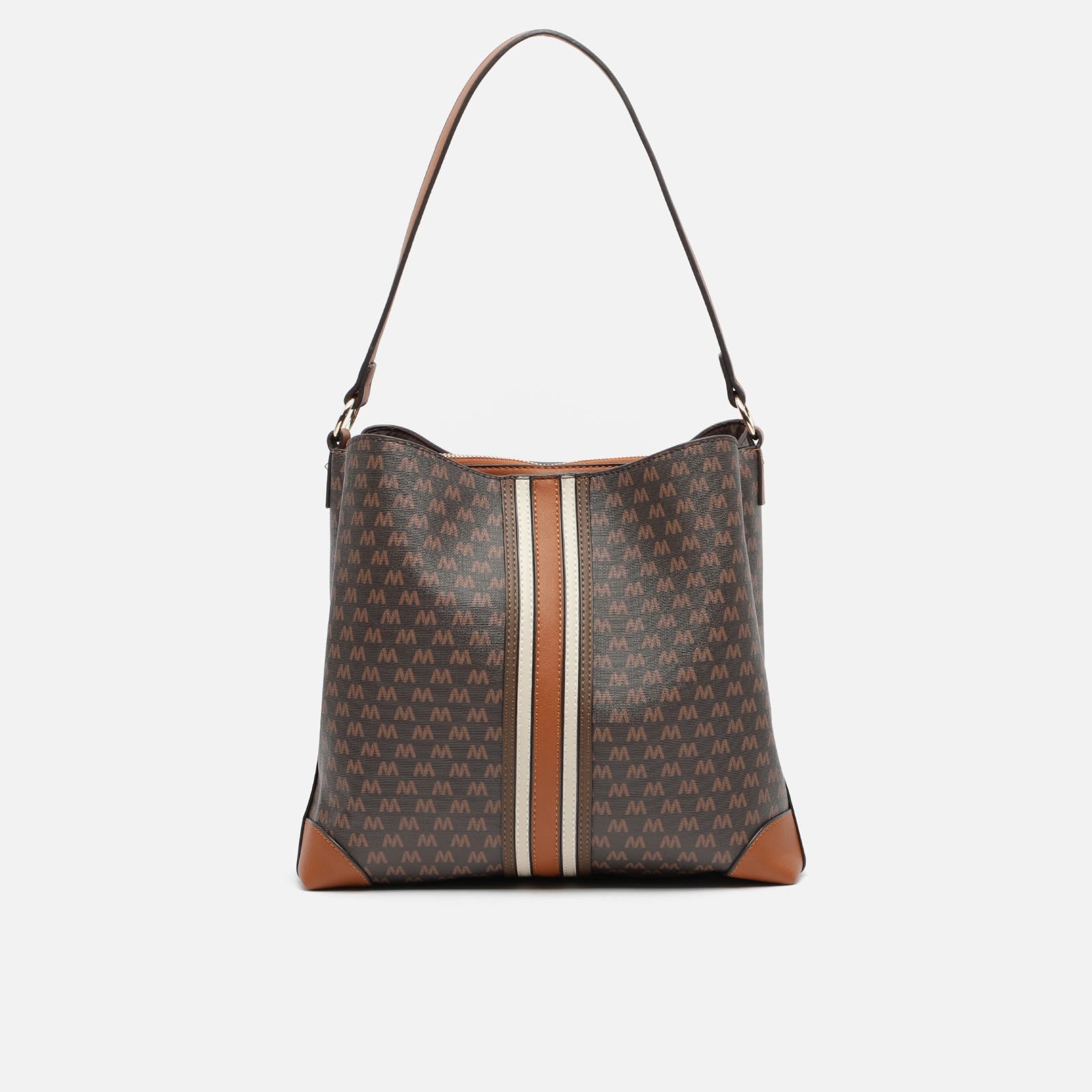La borsa media Eveline di Misako è un classico con un tocco contemporaneo. Il design monogramma con l'iconica stampa “M” del marchio, abbinato a strisce verticali multicolore in effetto pelle, le conferisce un tocco sofisticato. Con la sua silhouette fluida ma strutturata, è l'alleato versatile perfetto sia per il lavoro che per le uscite casual.