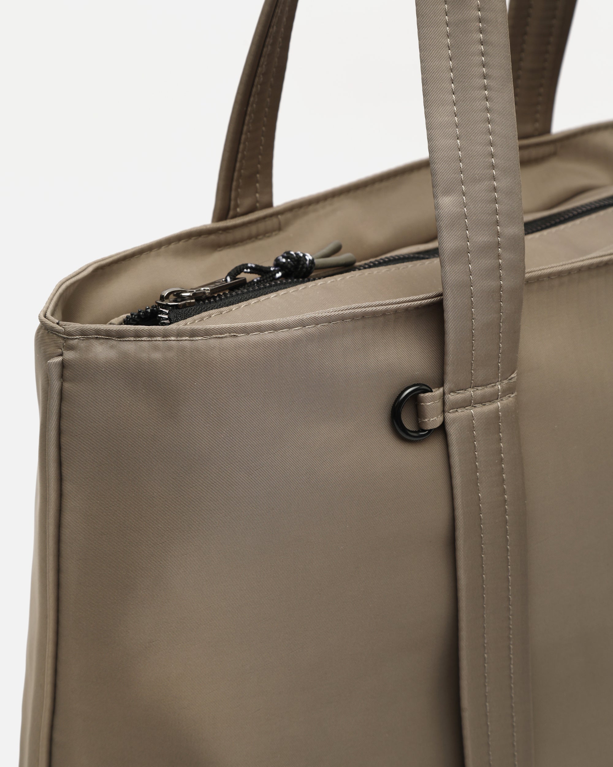 I suoi manici rinforzati, cuciti alla base, assicurano una presa confortevole sia sulla spalla che nella mano e completano il suo design sobrio.