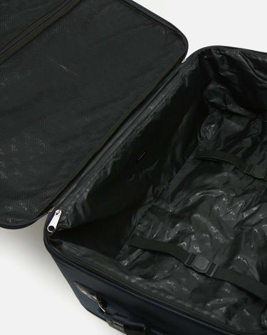 Include dettagli funzionali come la tracolla per agganciare giacche o borse e il portaetichette posteriore integrato. All'interno, la fodera in poliestere di alta qualità, il divisorio in rete ad apertura totale e le cinghie elastiche regolabili mantengono i vostri effetti personali organizzati e al sicuro. Un must-have di base per i lunghi viaggi con stile e praticità totale.
