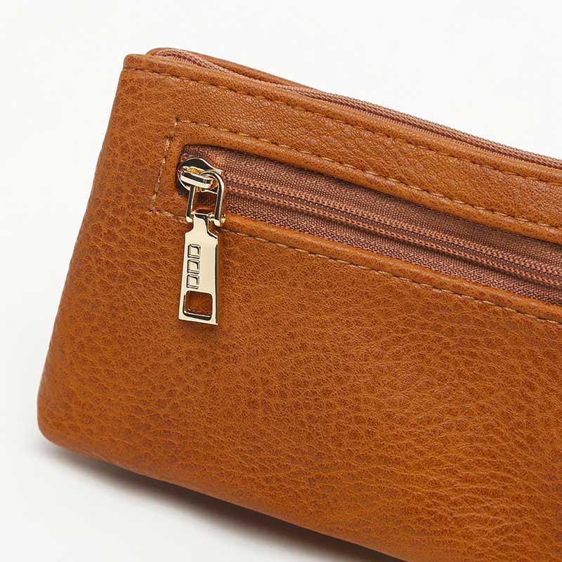 Il portafoglio Misako Veris effetto pelle si distingue per l'ampia capacità di archiviazione, grazie ai tre scomparti indipendenti e alla tasca esterna con zip che consente di tenere perfettamente organizzati documenti, monete, banconote e carte senza occupare ulteriore spazio. Questo portafoglio è rifinito con una combinazione di resistenza e morbidezza al tatto per una facile manutenzione e durata. Il design monocolore in tonalità stagionali si abbina perfettamente a qualsiasi borsa, mentre la targhetta metallica con logo aggiunge un tocco sofisticato. È l'accessorio ideale da indossare tutti i giorni.
