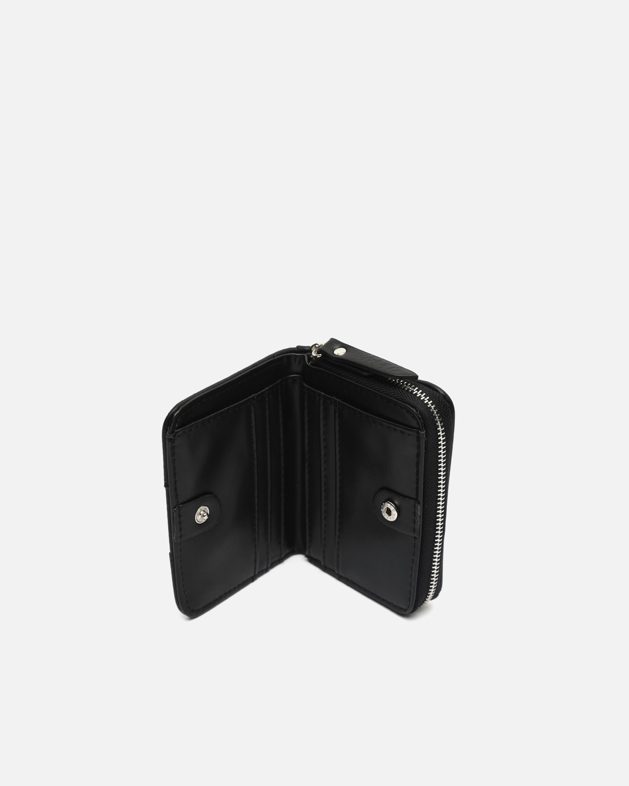 Include due scomparti: il primo, con chiusura a scatto, progettato per carte e documenti d'identità; il secondo, con cerniera metallica perimetrale, include uno spazio espandibile per banconote o altri oggetti essenziali e una tasca interna per le monete. La sua distribuzione è pensata per tenere tutto ben organizzato e sempre a portata di mano.