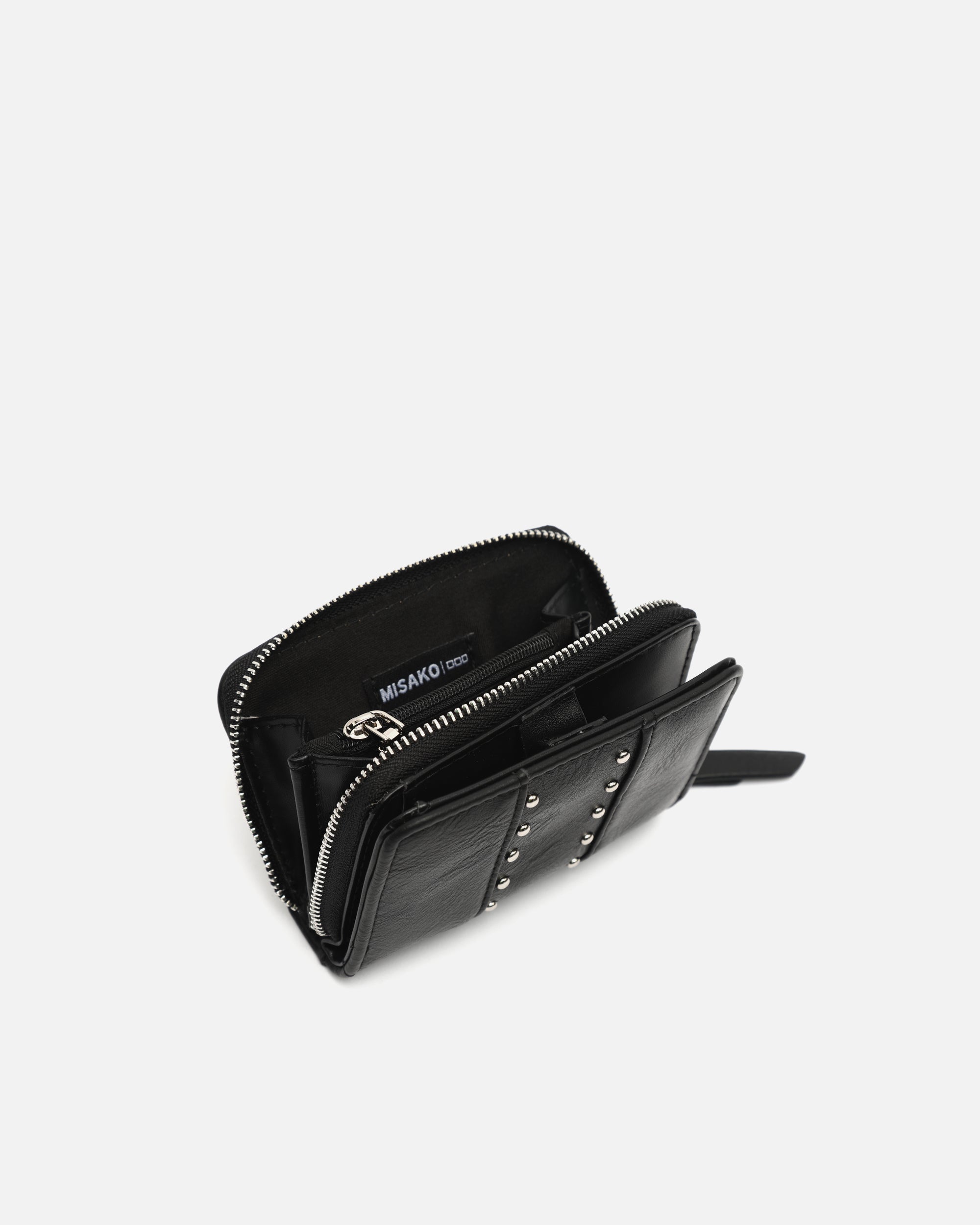 Il piccolo portamonete Zaokai di Misako dimostra che lo stile non conosce dimensioni. Realizzato in pelle di alta qualità, si distingue per il suo design moderno, la struttura solida e i dettagli curati delle borchie metalliche che fanno la differenza.