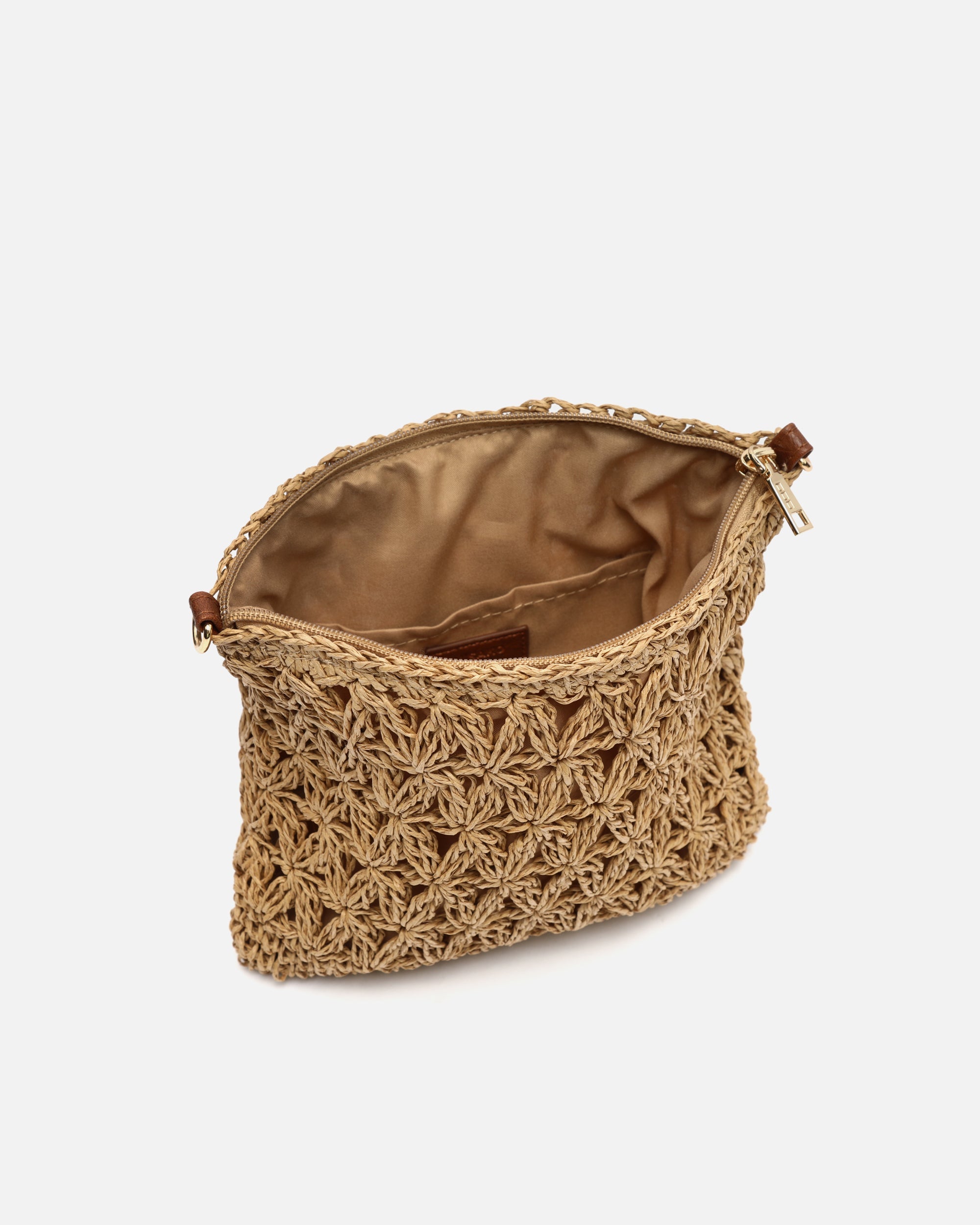 Schoudertas met raffia-effect