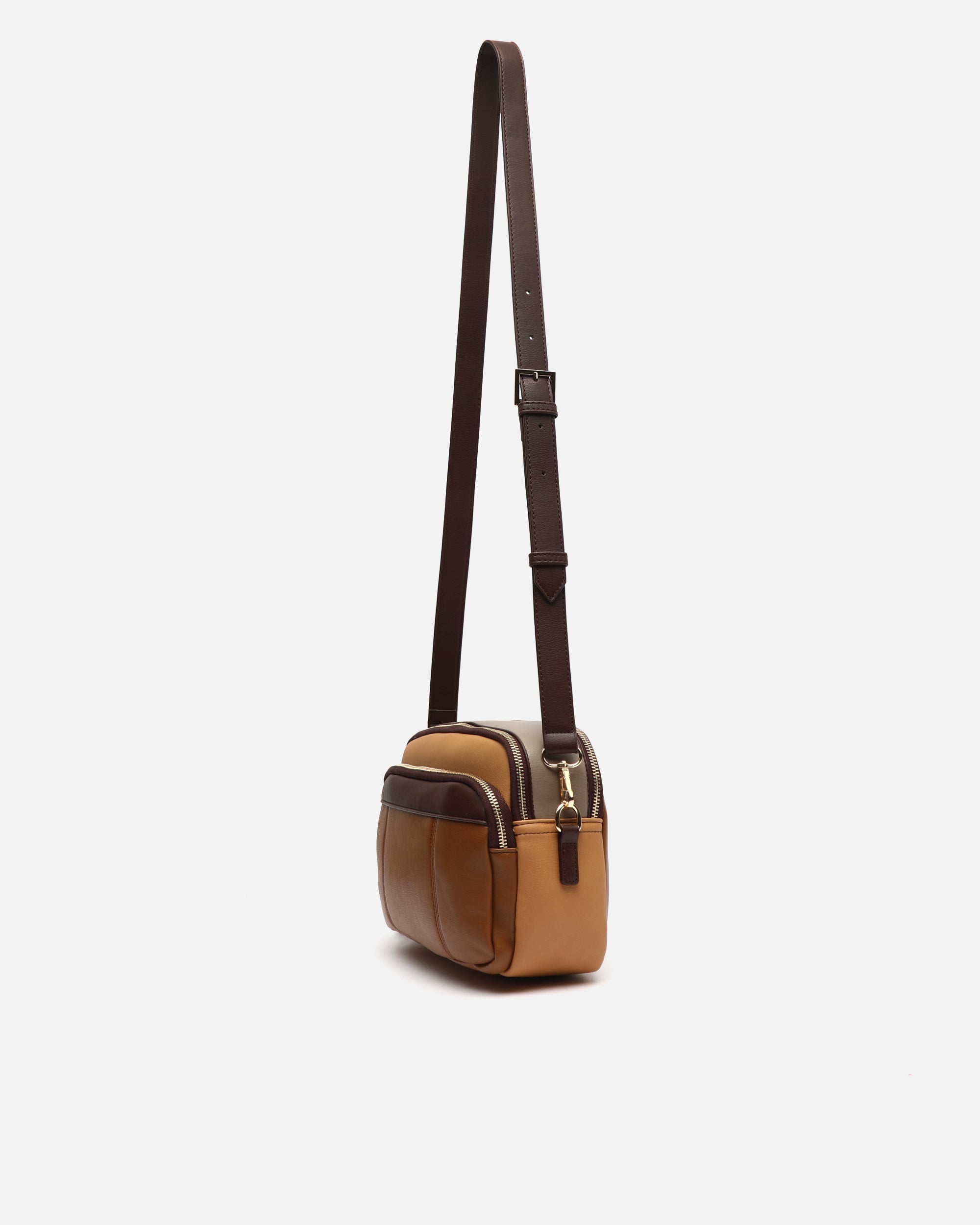 Driekleurige schoudertas met hangend detail