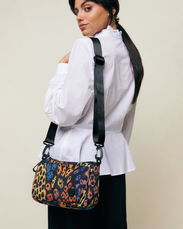 De tas is gemaakt van gerecycled nylon, wat hem zacht en sterk maakt, en heeft praktische vakken, een ritssluiting en een afneembare riem, ideaal om hem crossbody of over de schouder te dragen, afhankelijk van de gelegenheid.