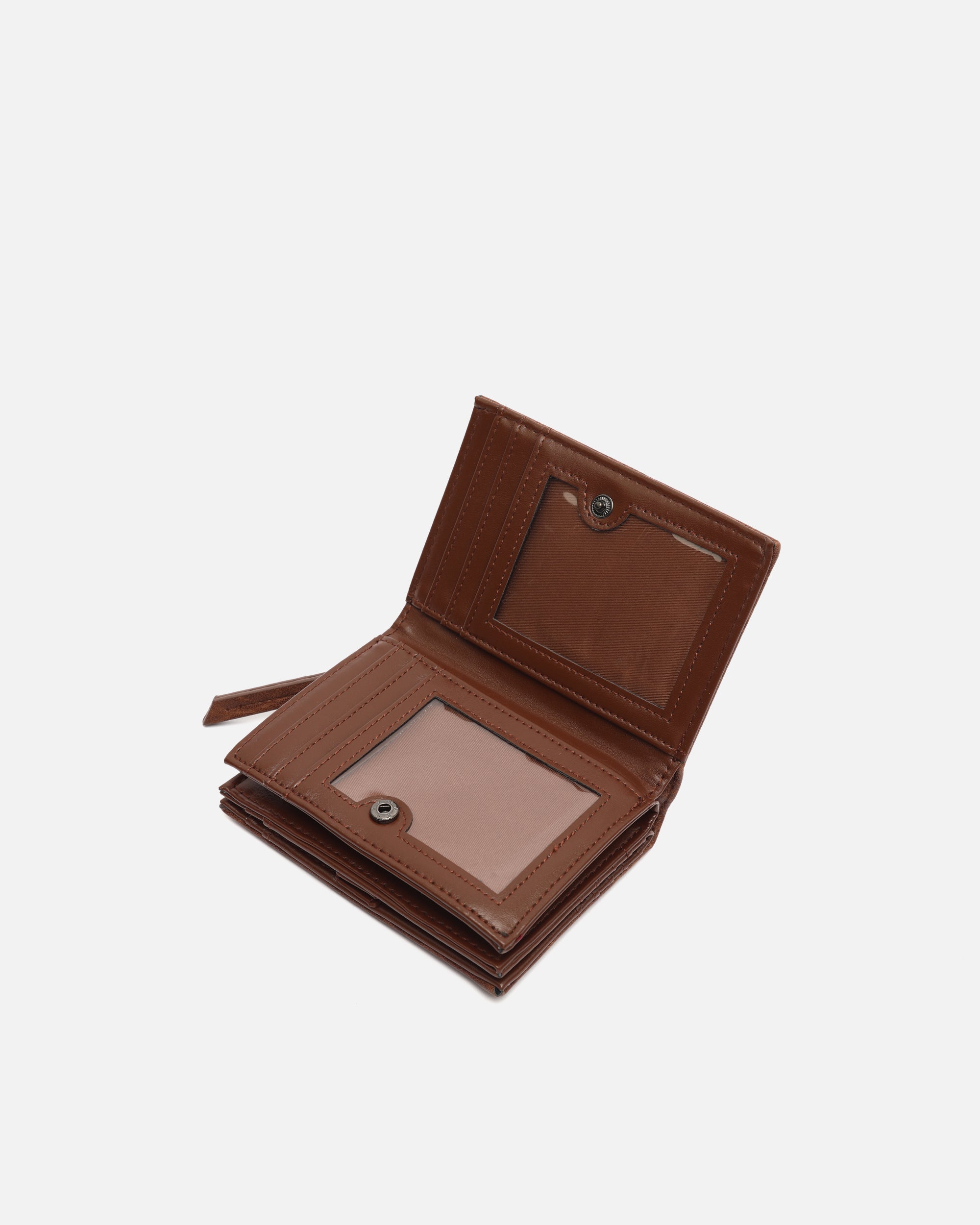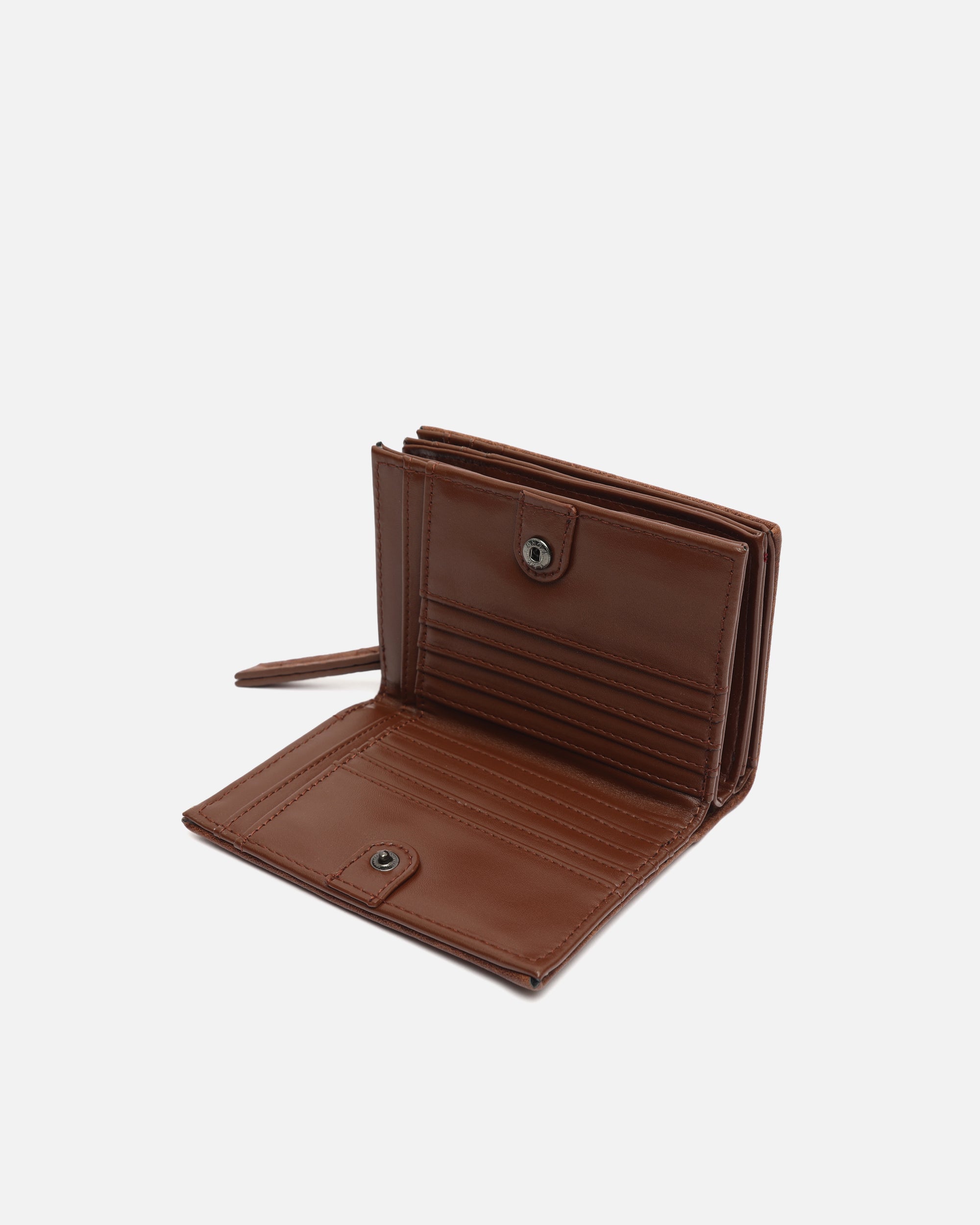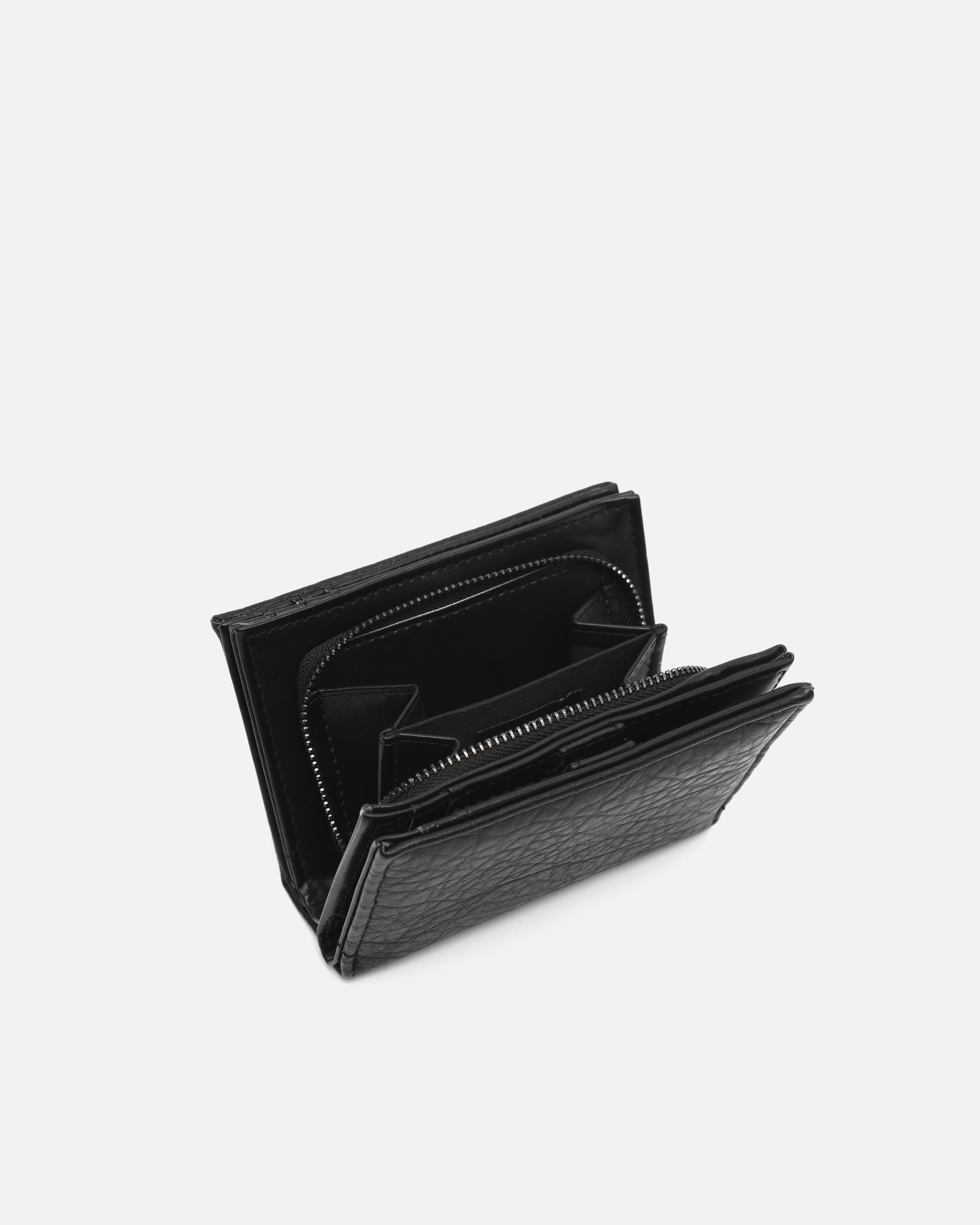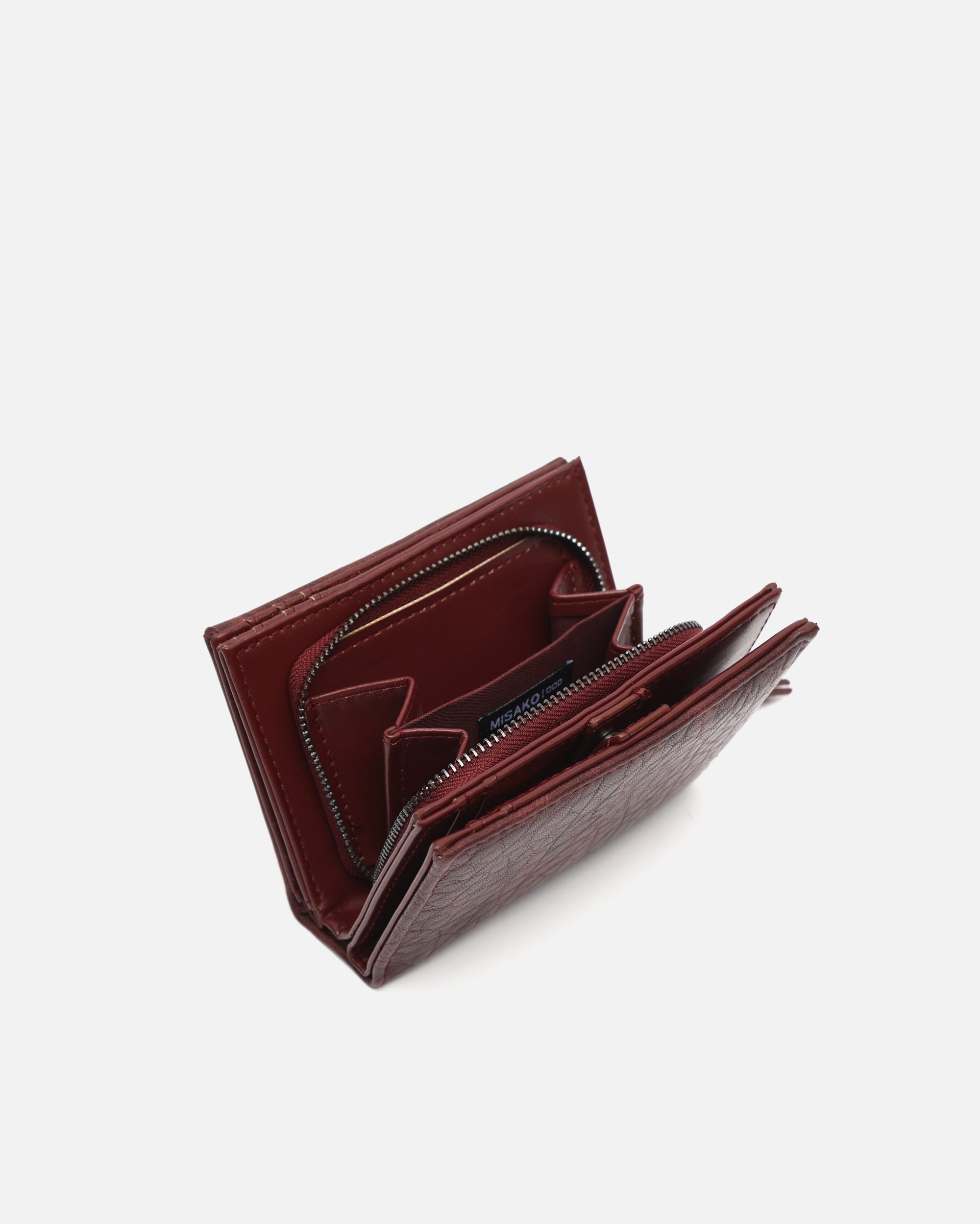 Gemaakt van zacht gestructureerd leer met reliëf, biedt het een slimme indeling van de ruimte. De binnenkant is verdeeld in drie vakken, zodat je alles wat je nodig hebt overzichtelijk kunt meenemen. Een vakje met ritssluiting beschermt je muntgeld en briefgeld, terwijl de flappen voor pasjes en documenten alles op orde houden, veilig afgesloten met drukknopen.