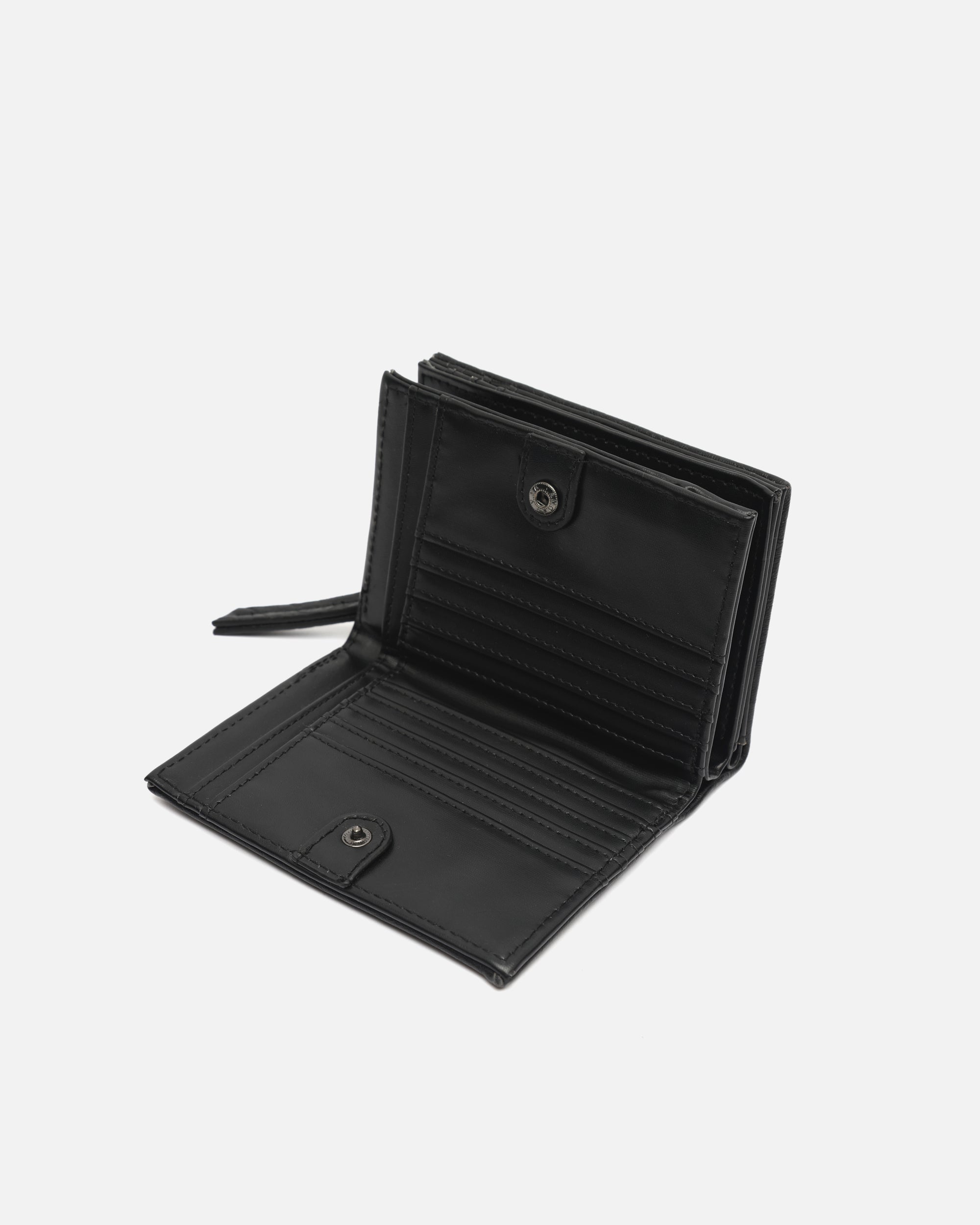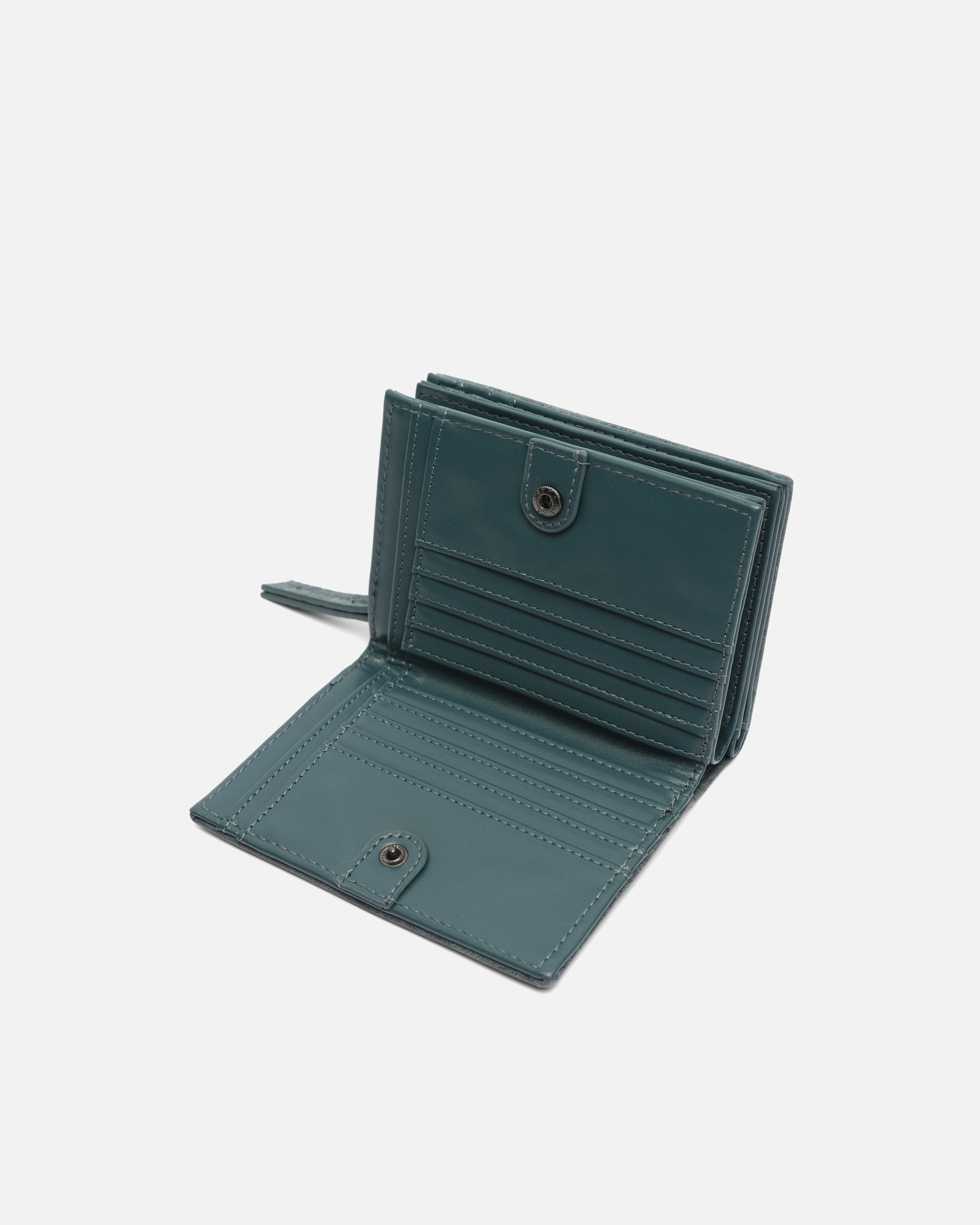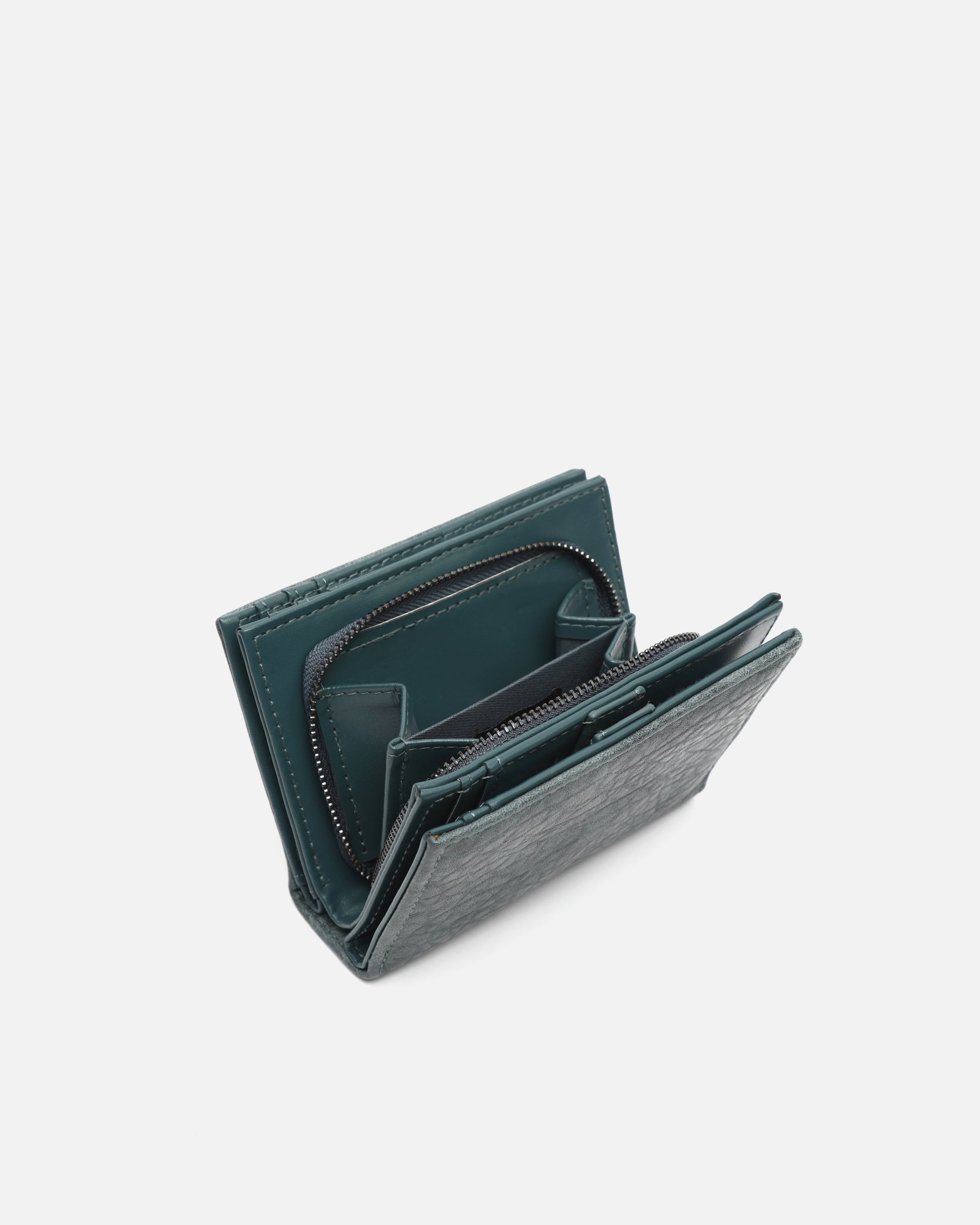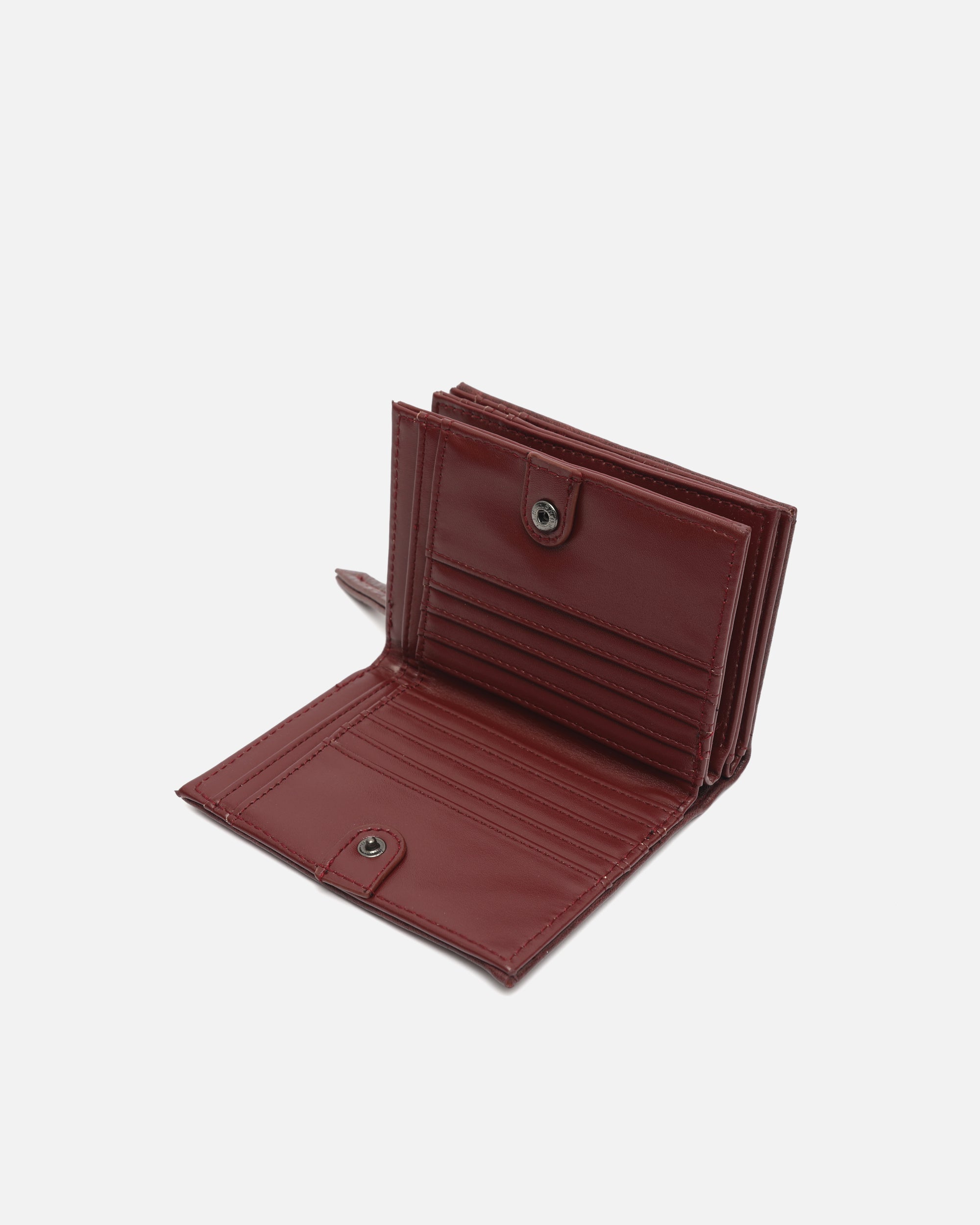Gemaakt van zacht gestructureerd leer met reliëf, biedt het een slimme indeling van de ruimte. De binnenkant is verdeeld in drie vakken, zodat je alles wat je nodig hebt overzichtelijk kunt meenemen. Een vakje met ritssluiting beschermt je muntgeld en briefgeld, terwijl de flappen voor pasjes en documenten alles op orde houden, veilig afgesloten met drukknopen.