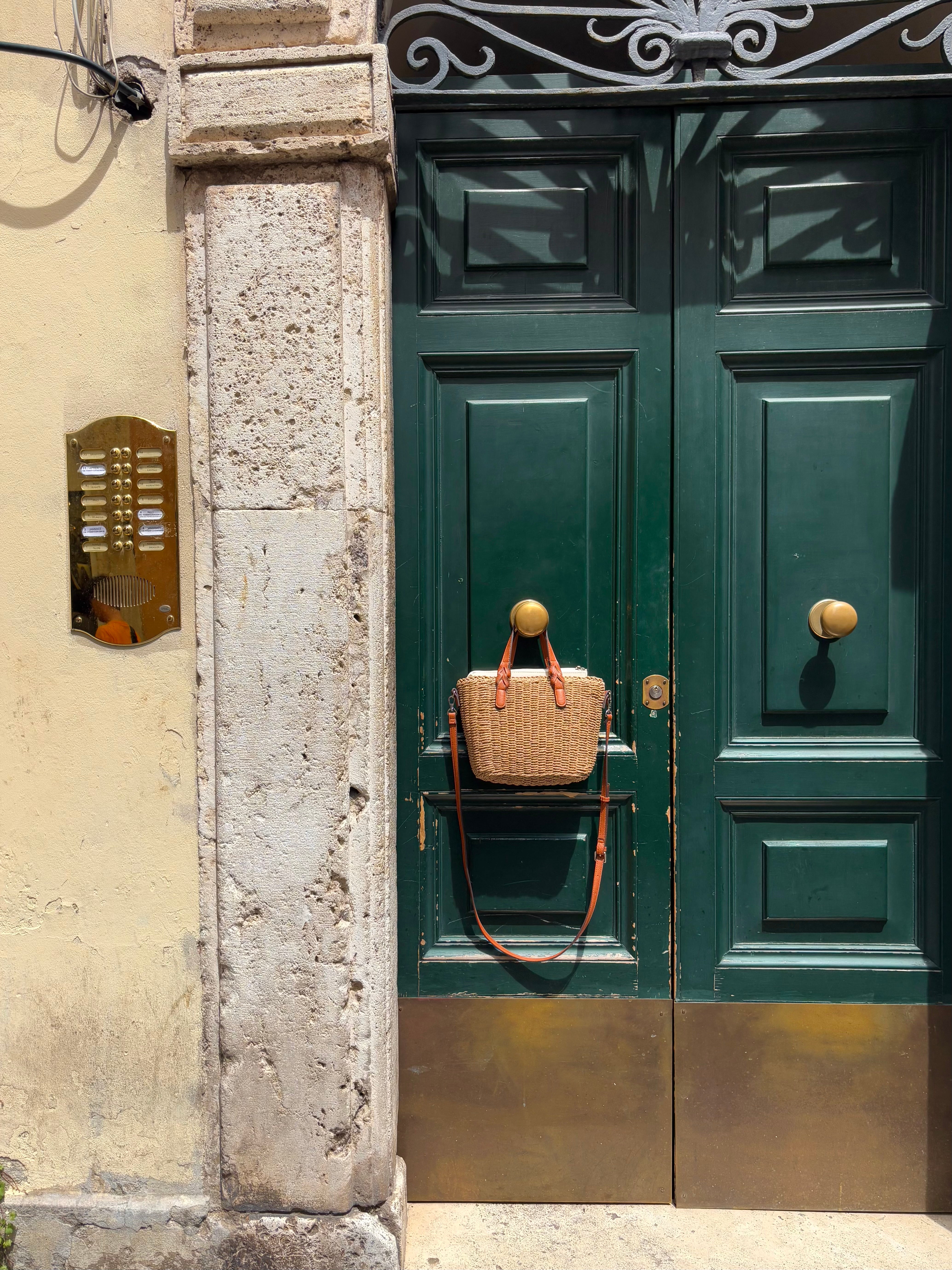 Picasi kleine tas met raffia-effect en afneembare schouderriem