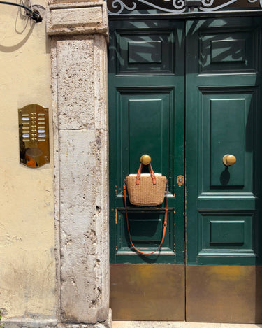 Picasi kleine tas met raffia-effect en afneembare schouderriem van Misako