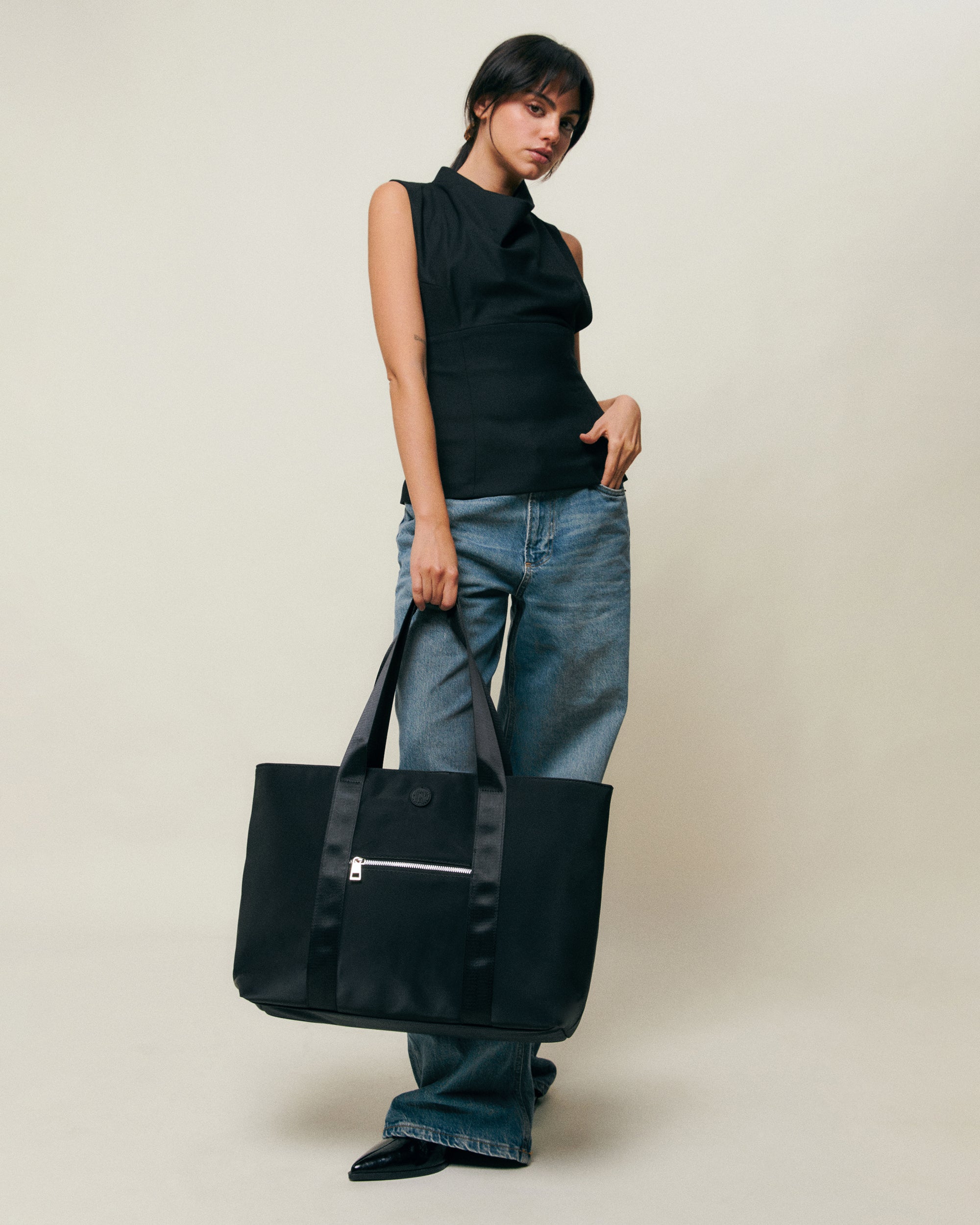 Wszechstronna, lekka i zaprojektowana, aby towarzyszyć Ci w codziennych czynnościach. Austeru to duża torba Misako, która na nowo definiuje pojęcie torby do pracy, na uczelnię lub na siłownię. Zewnętrzna powłoka z satynowego nylonu jest odporna na lekki deszcz i zachowuje strukturę bez zwiększania wagi. Czarne uchwyty z taśmy są wyjątkowo wytrzymałe i wygodnie układają się na ramieniu, a górny zamek błyskawiczny zapewnia bezpieczeństwo wszystkich rzeczy. Jeśli wygląd zewnętrzny przyciąga wzrok, wnętrze nie jest bezużyteczne: posiada przestronną komorę główną i funkcjonalne kieszenie, w tym wyściełany rękaw na tablet i zapinaną na zamek kieszeń idealną na drobne kosztowności.
