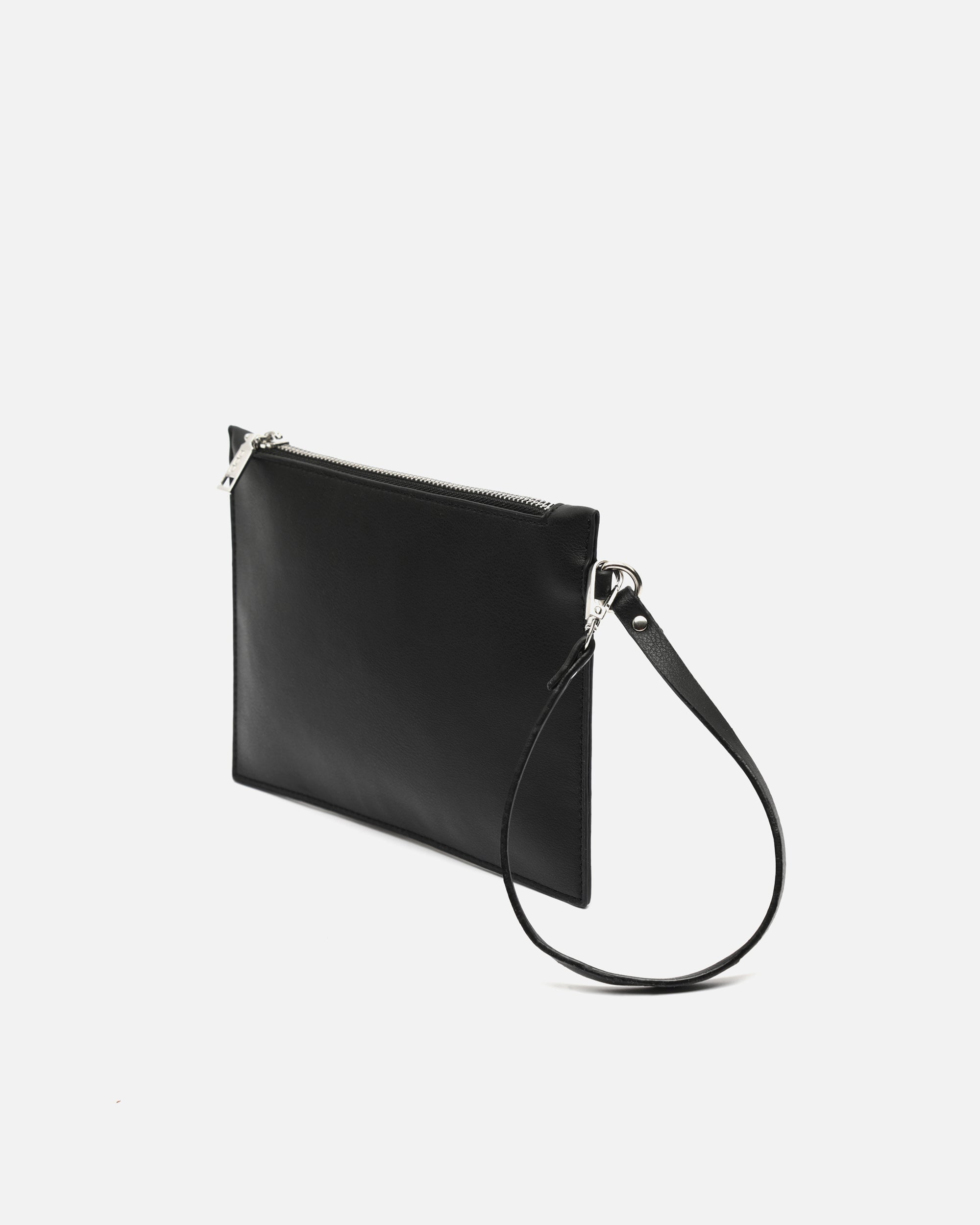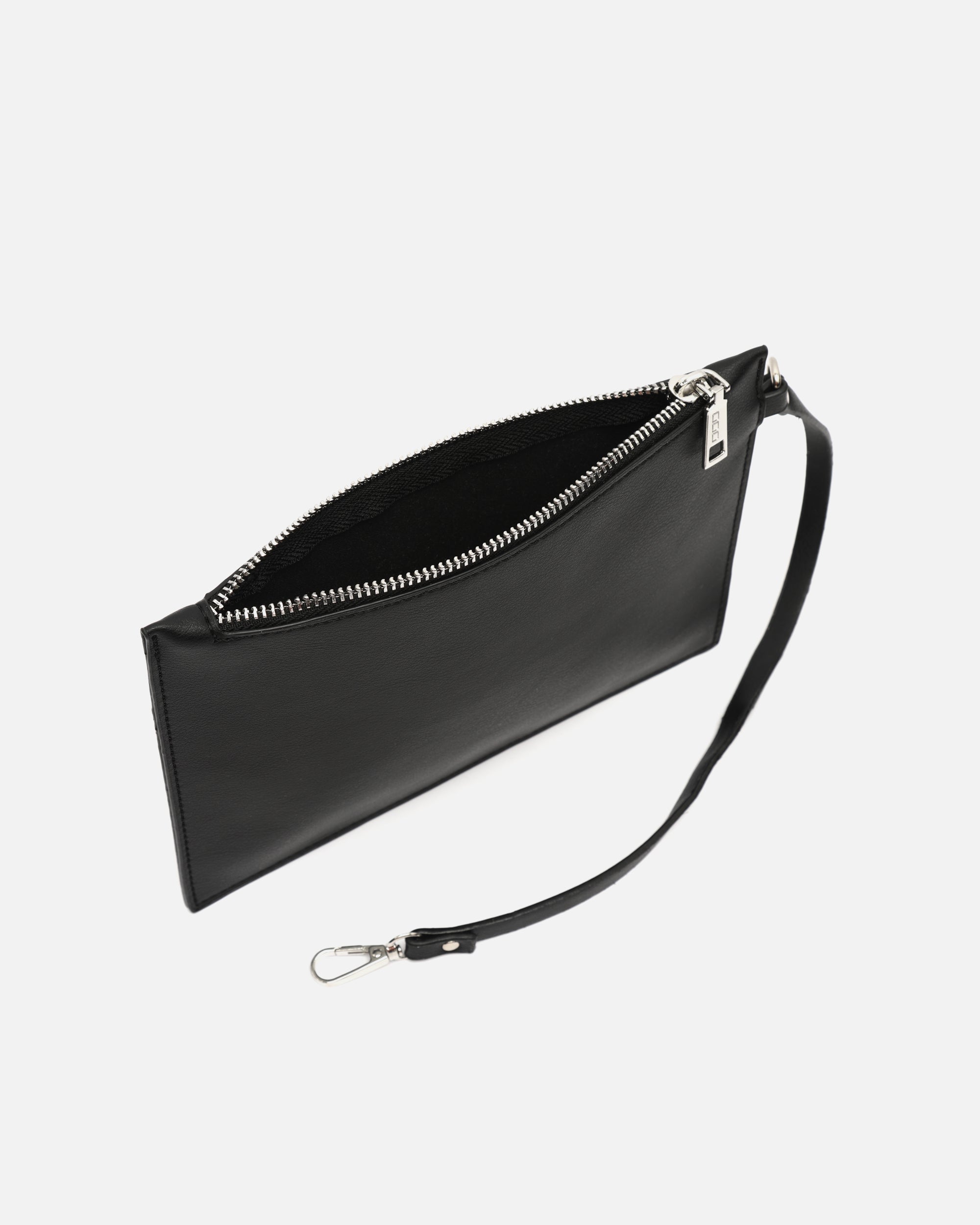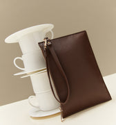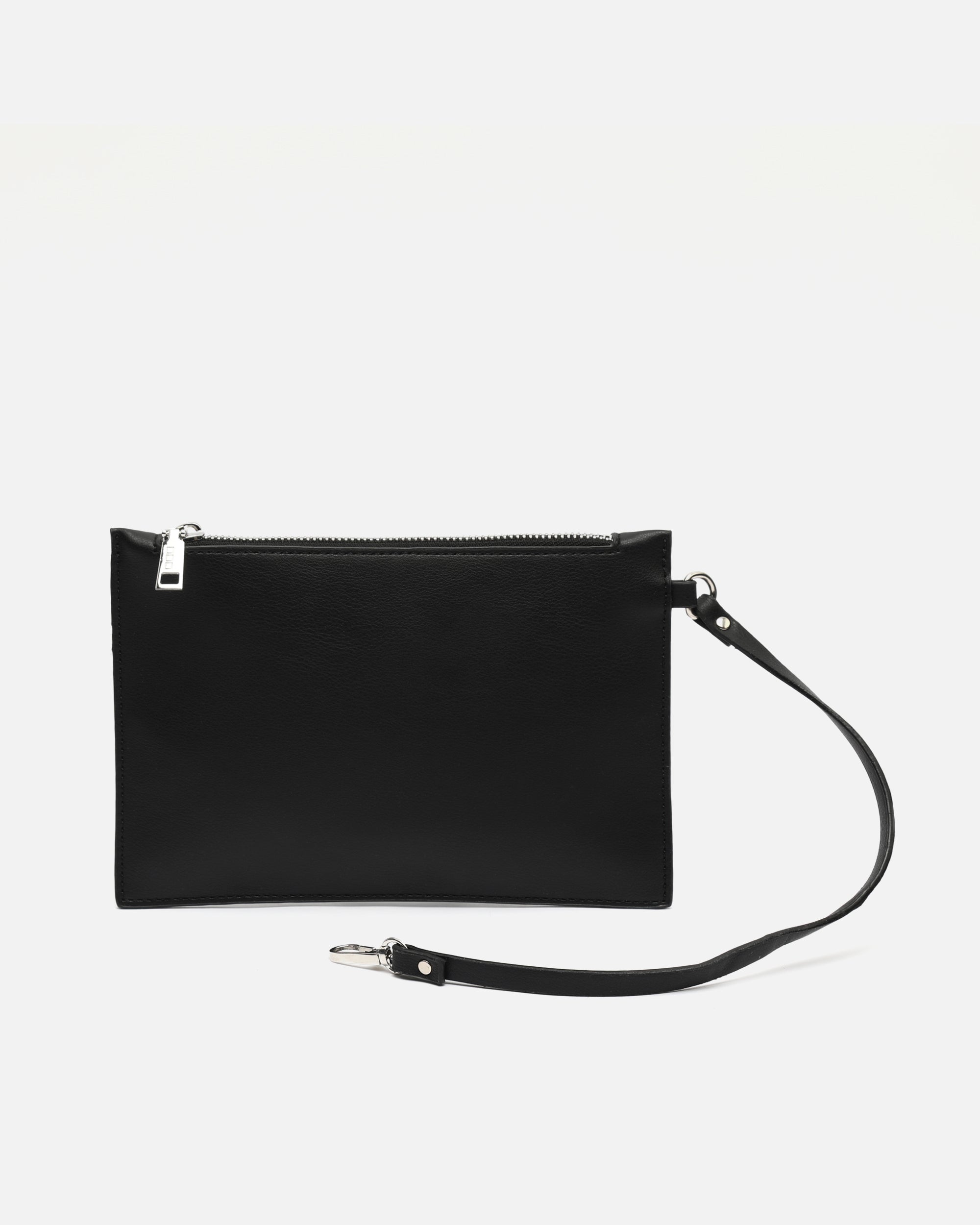 Sus detalles metálicos le dan un toque sofisticado a su diseño, mientras que la muñequera desmontable permite llevarlo cómodamente en la mano o dentro de un bolso más grande.