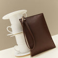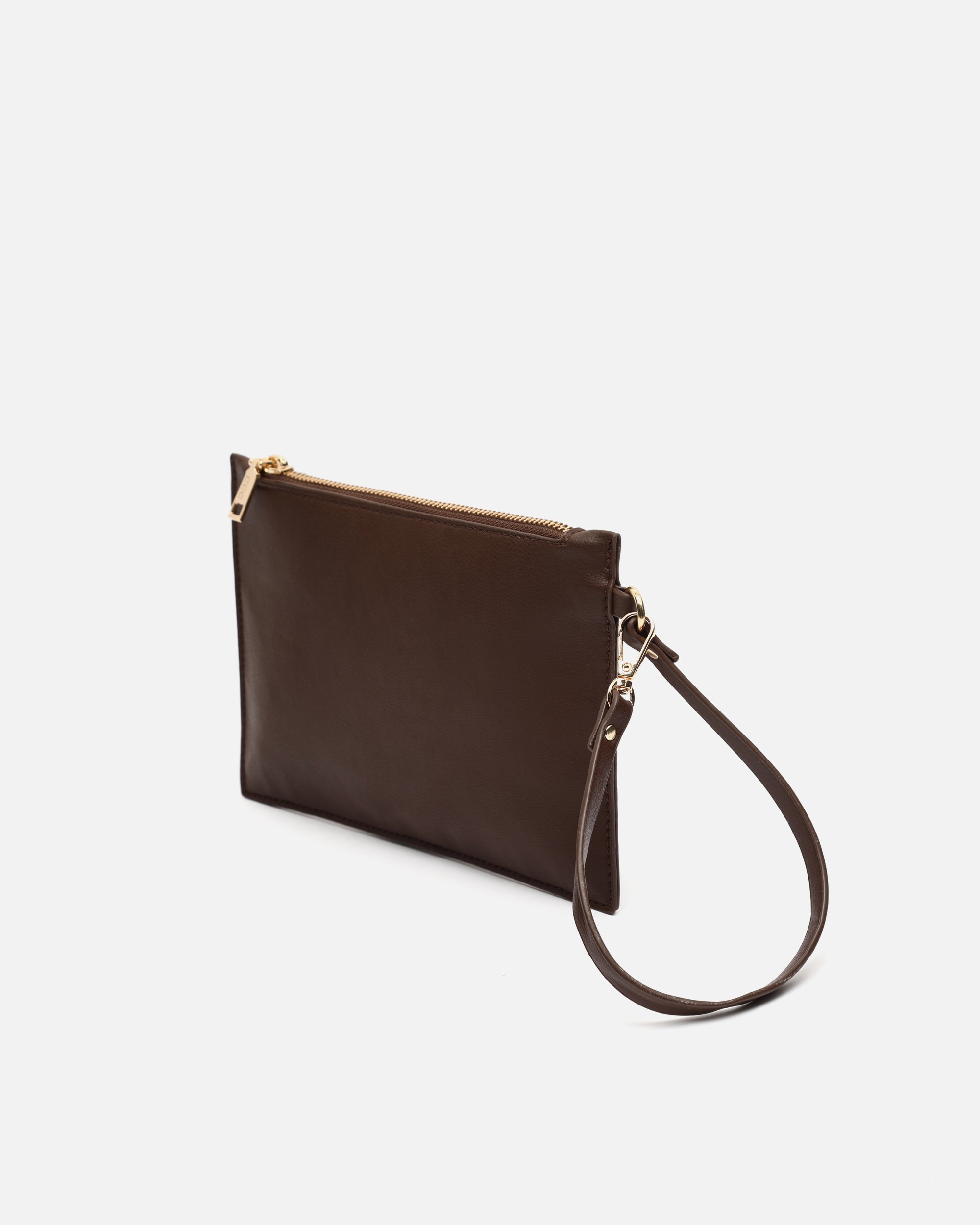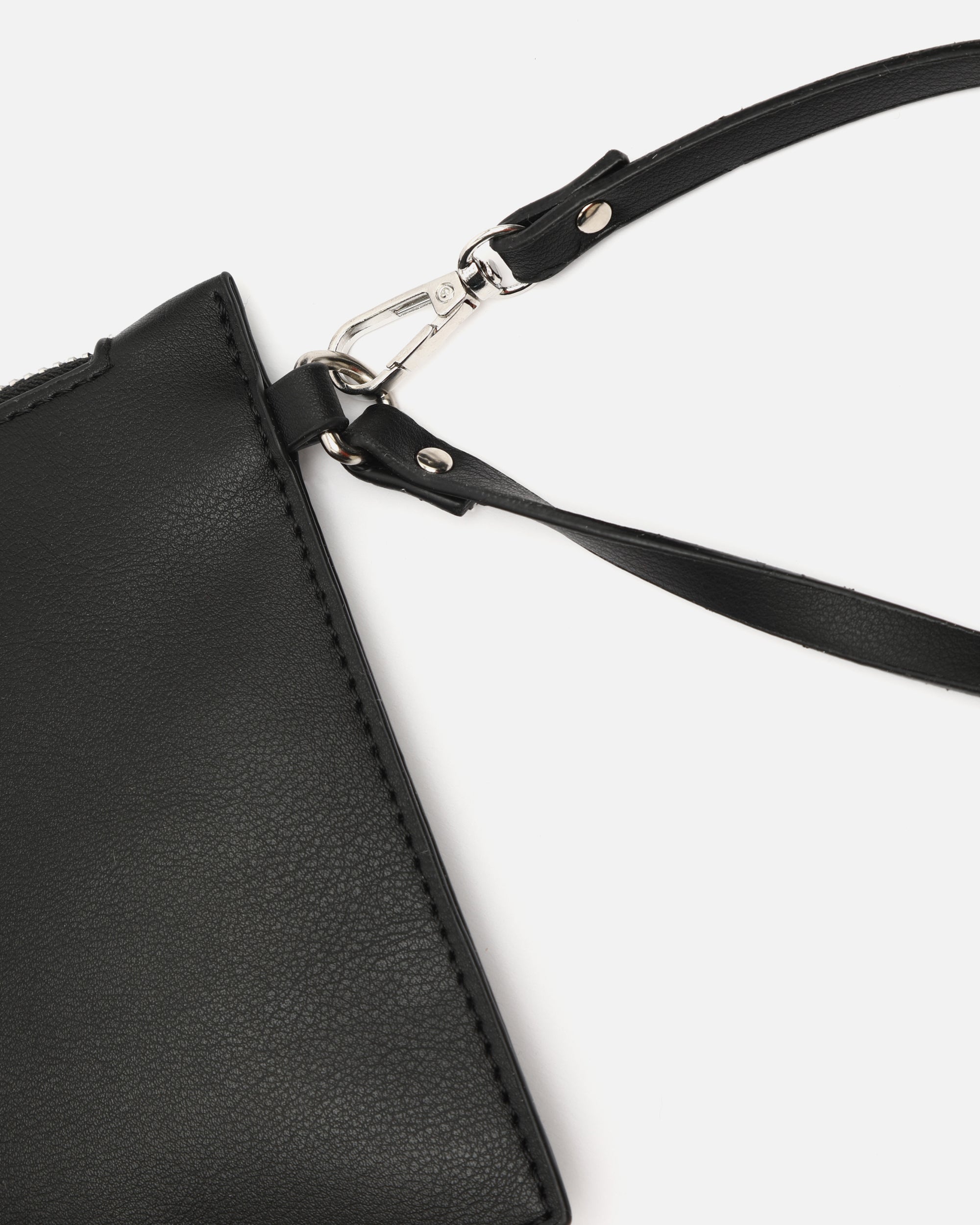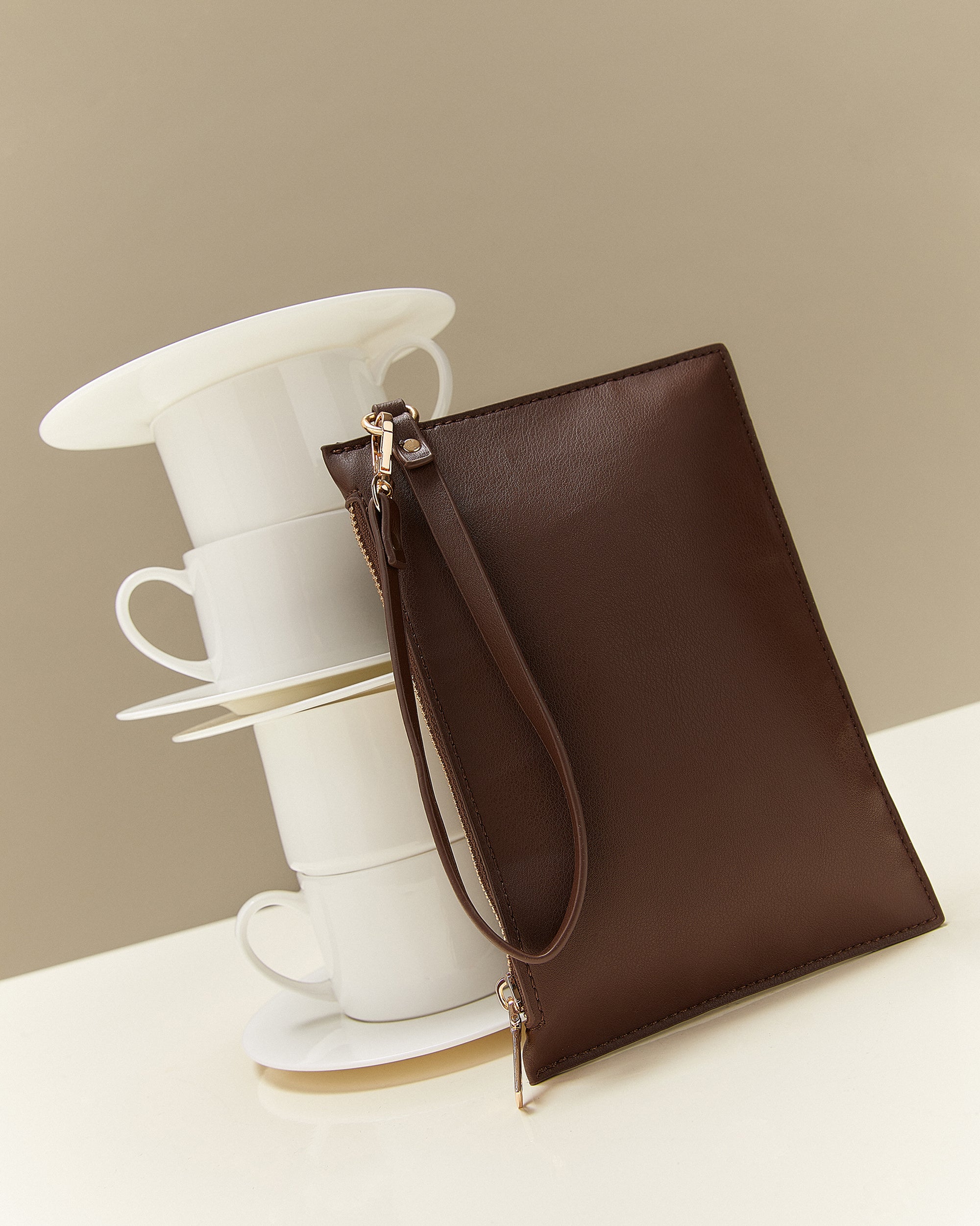 Sus detalles metálicos le dan un toque sofisticado a su diseño, mientras que la muñequera desmontable permite llevarlo cómodamente en la mano o dentro de un bolso más grande.