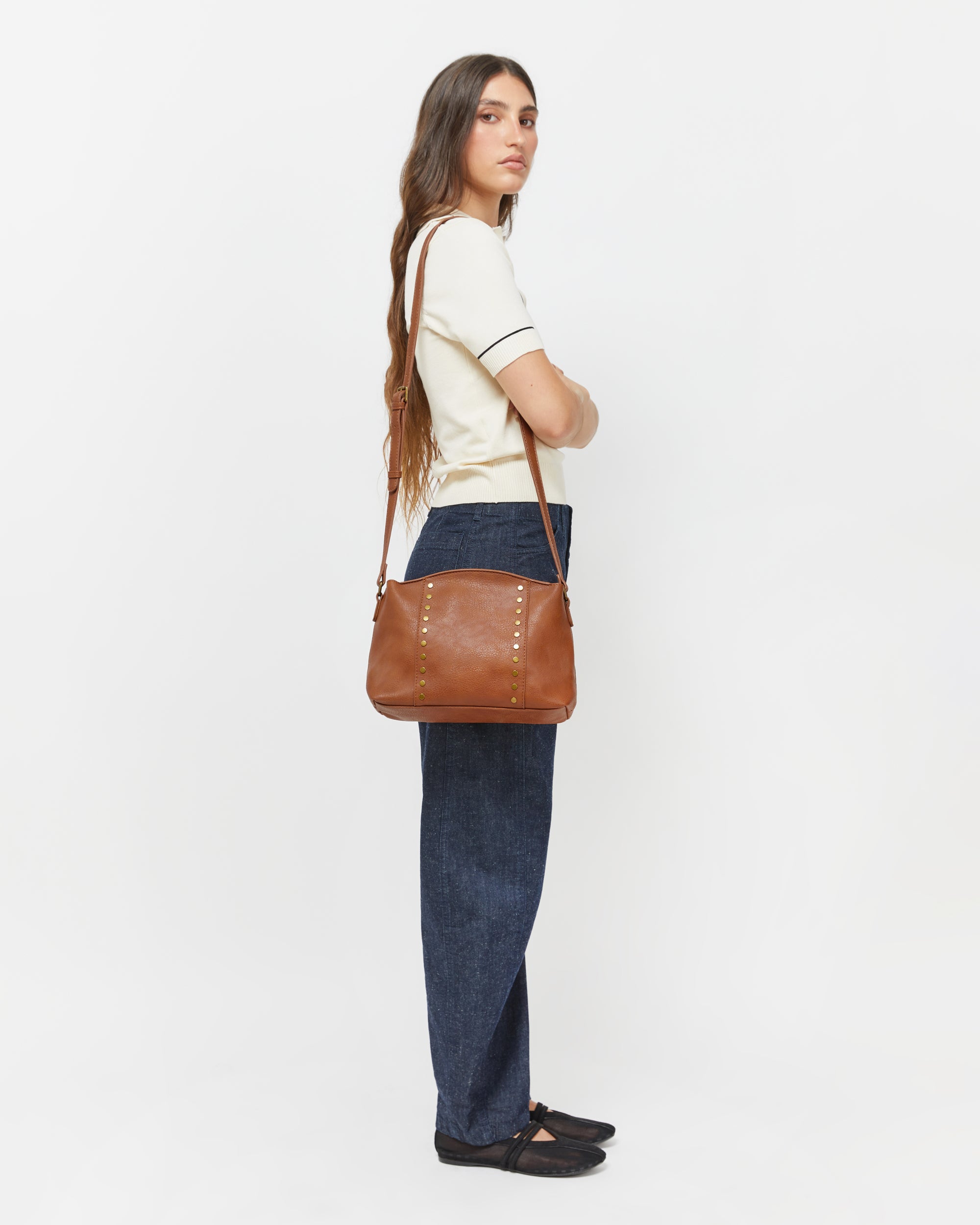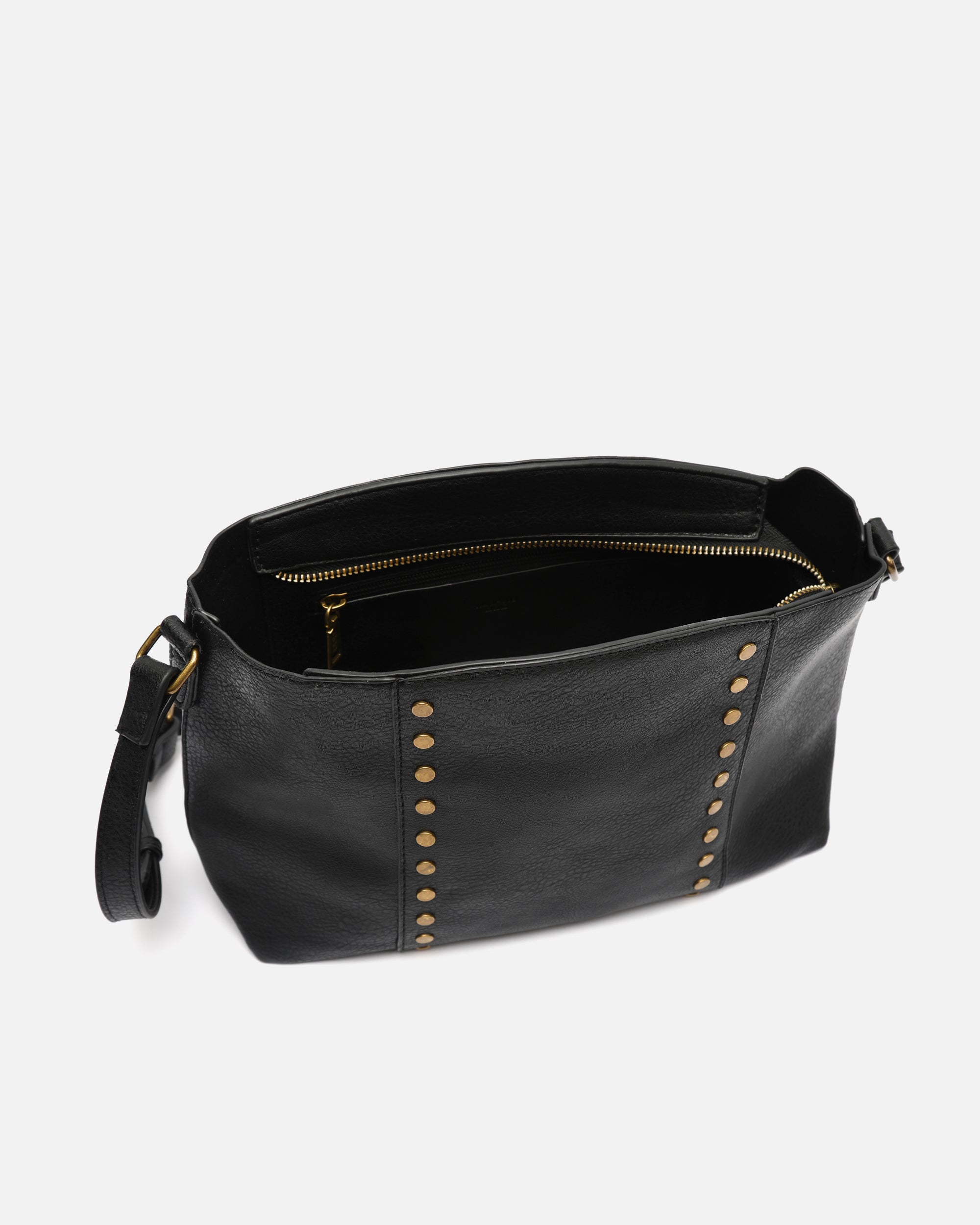 Un básico que nunca pasa de moda. Aniadi, el bolso bandolera de Misako, combina el encanto del diseño clásico con la comodidad del día a día. Su acabado en efecto piel de gran calidad y los pequeños remaches metálicos frontales le aportan carácter y ese aire boho-chic que se adapta a cualquier plan.