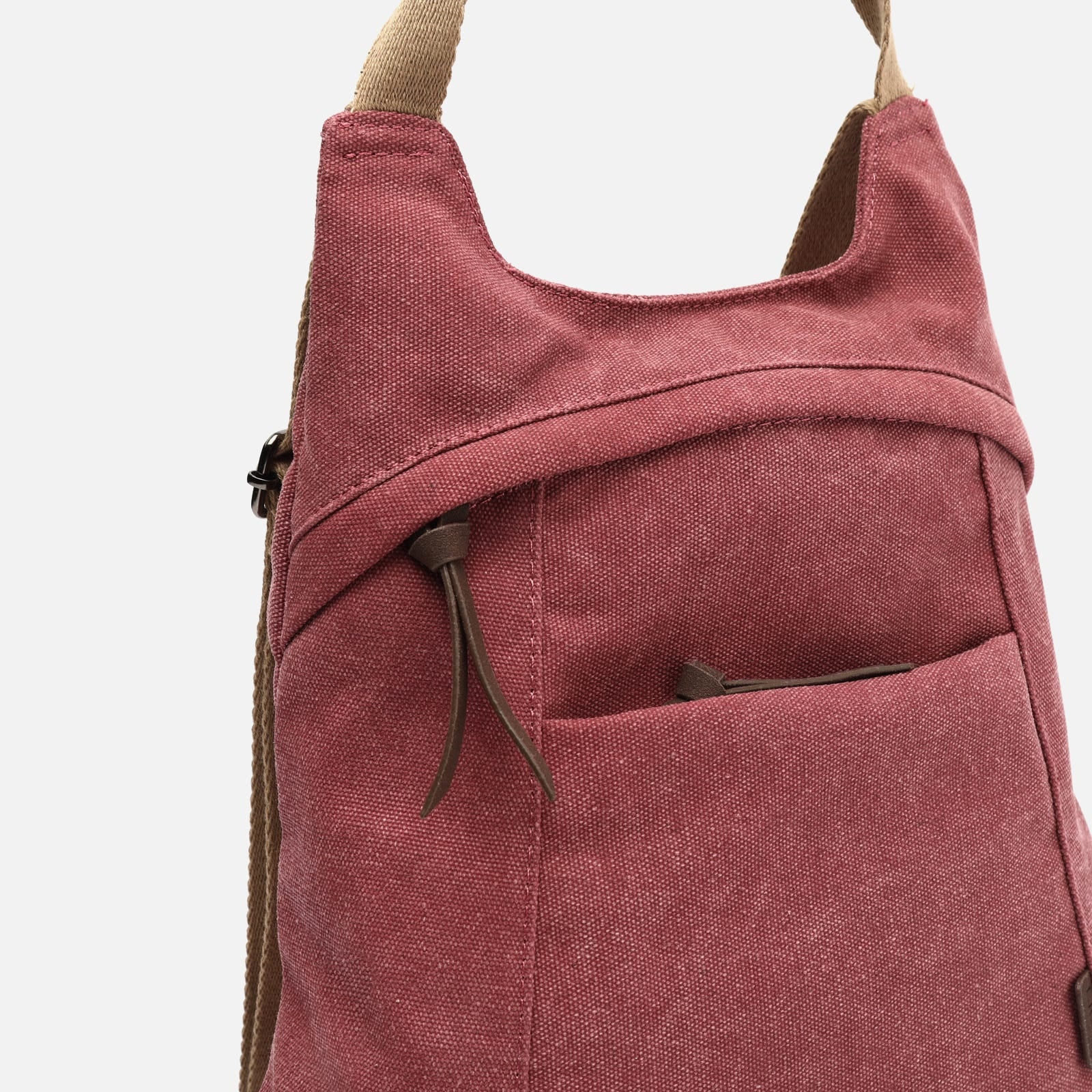 El asa superior con detalles en efecto piel y las correas ajustables en color contraste permiten llevarla cómodamente a la espalda o al hombro, adaptándose a tu ritmo y necesidades. En el interior, incluye un amplio compartimento con cierre oculto para proteger tus objetos más valiosos, además de un bolsillo con cierre de cremallera para mantener todo en orden.