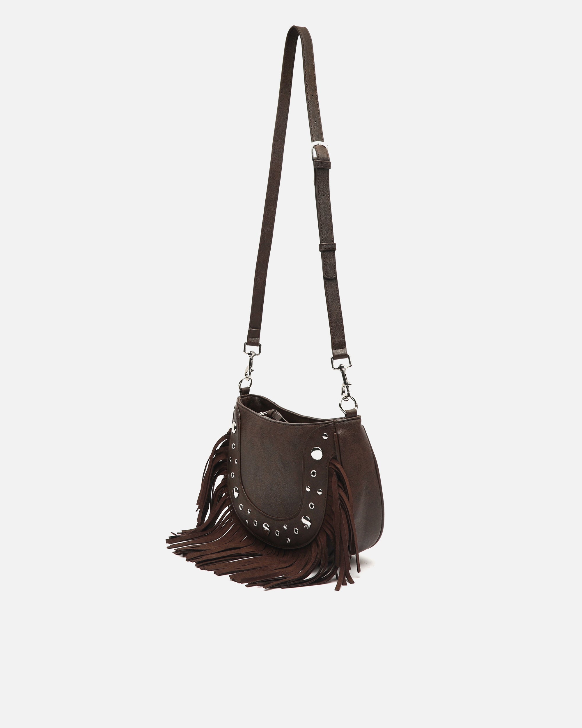 Catrina bolso de hombro con asa bandolera extraíble con detalles metálicos y flecos de Misako