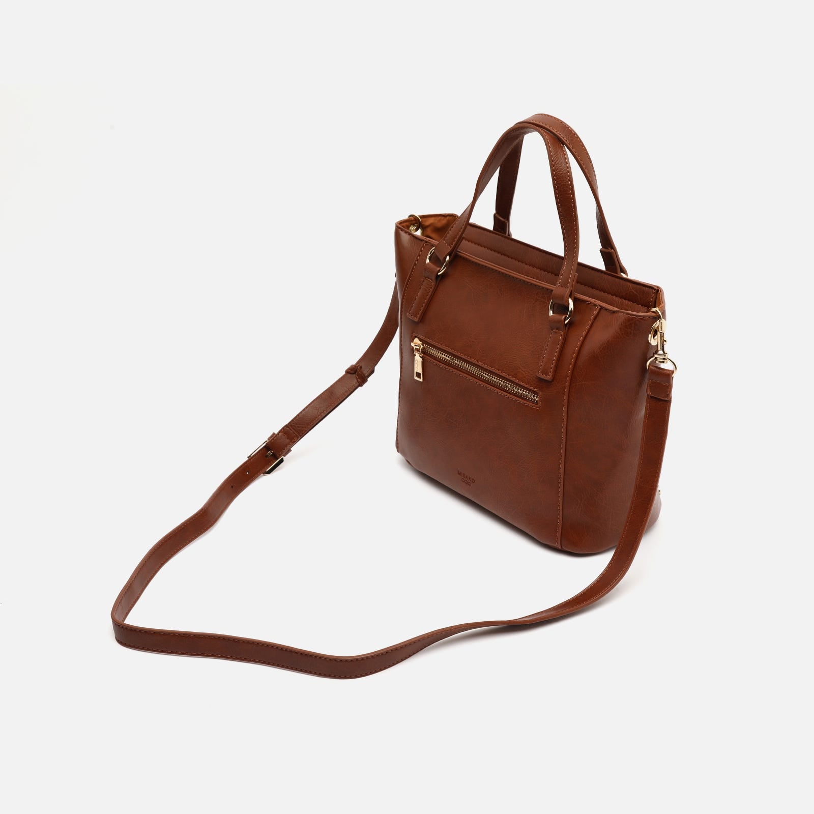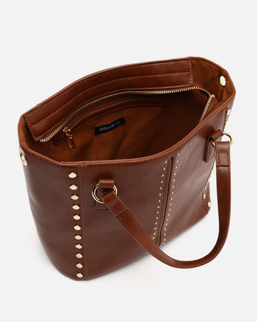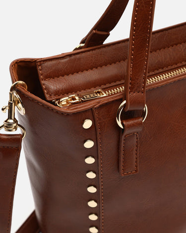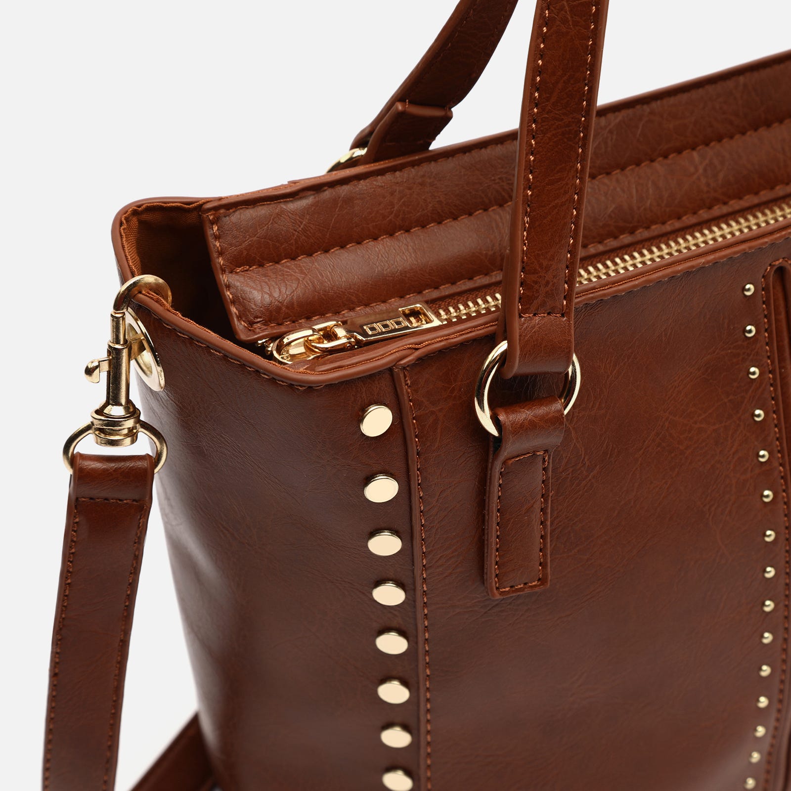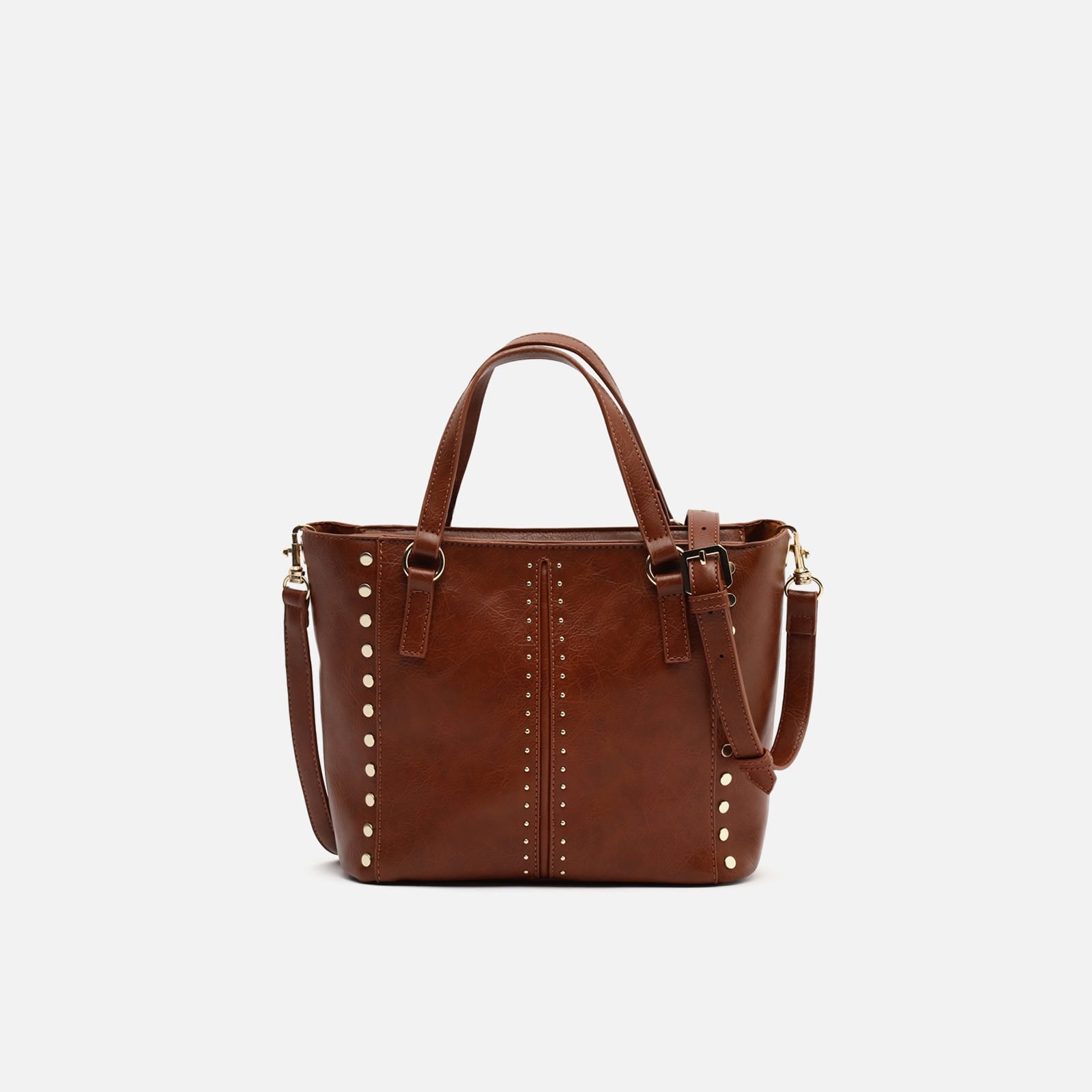 Bolso tote mediano con asa bandolera extraíble y detalles metálicos