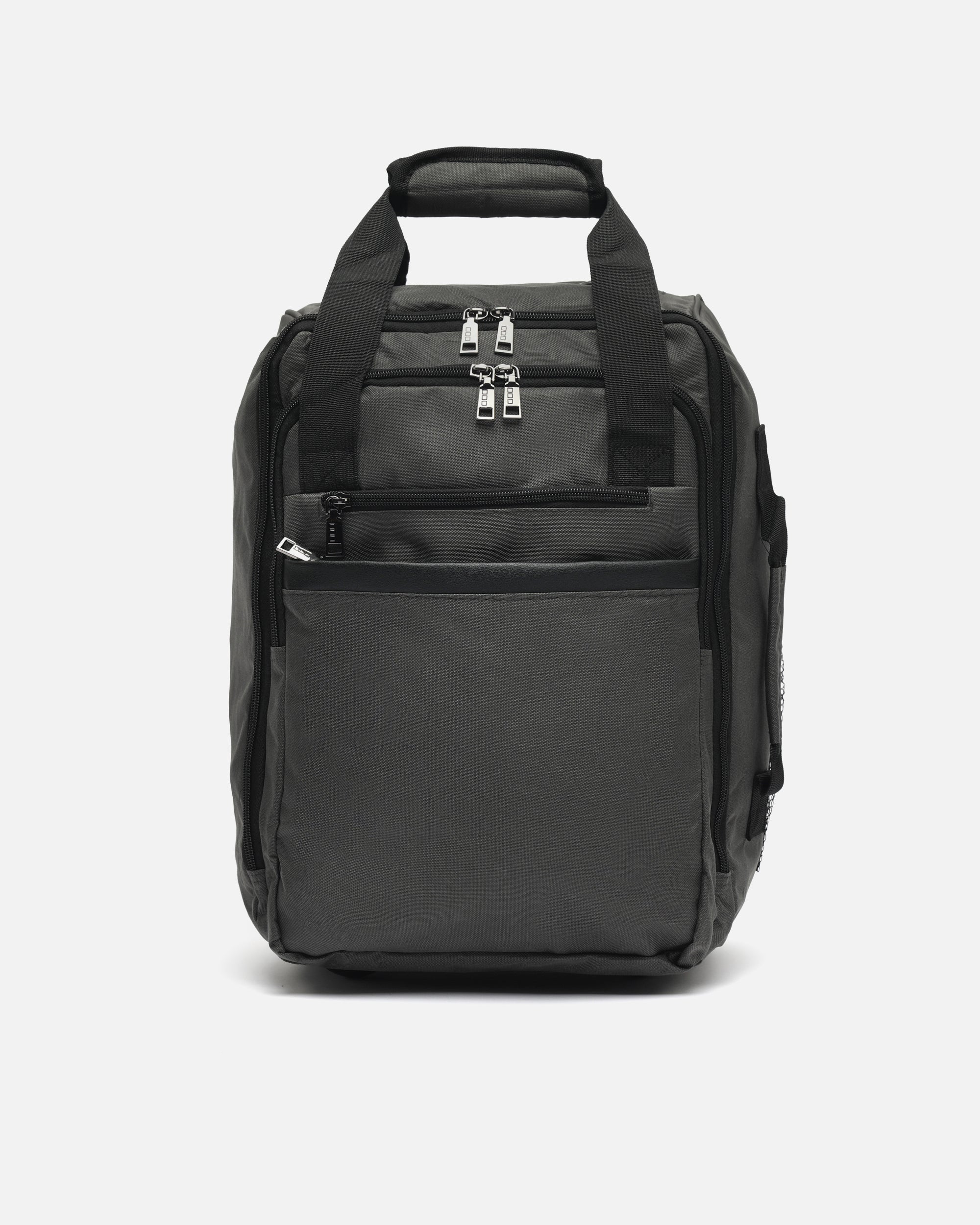 Su estructura ligera incluye ruedas resistentes y un asa telescópica que permite un deslizamiento ágil y sin esfuerzo. Cuando lo necesites, puedes transformarlo fácilmente en mochila gracias a sus tirantes acolchados ocultos en un compartimento trasero, lo que te permite llevarlo cómodamente a la espalda y tener las manos libres en cualquier trayecto.