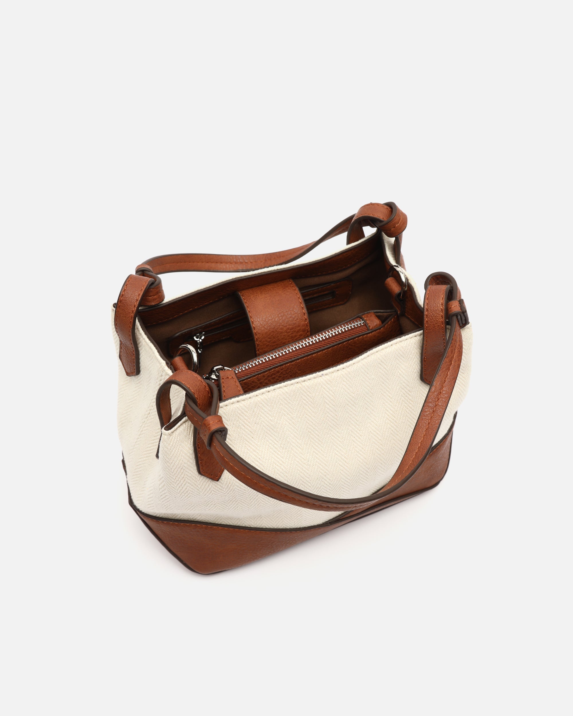 Su diseño incorpora un asa bandolera extraíble y un cierre superior con lengüeta y botón imantado. Destaca por su interior bien distribuido, con bolsillos que facilitan una mejor organización y compartimentos con cremallera para mayor seguridad. Además, su doble asa corta permite usarlo como bolso de mano, sumando un plus de versatilidad.