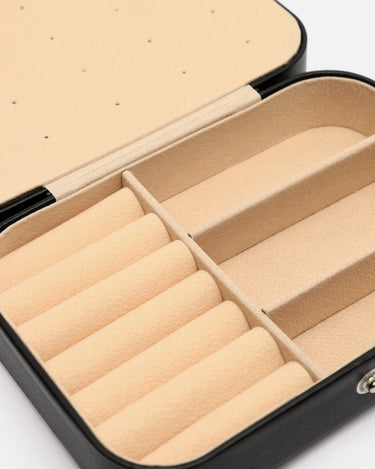 El joyero de viaje Noemi de Misako combina funcionalidad y elegancia en un diseño compacto y sofisticado.