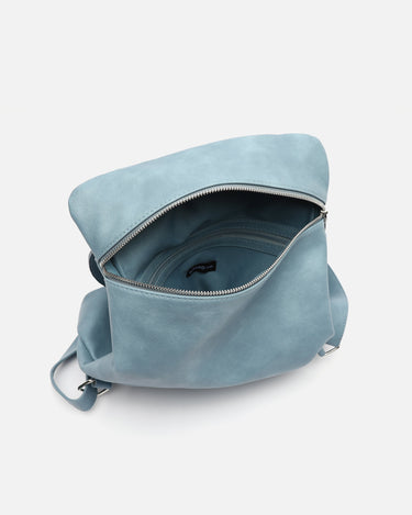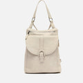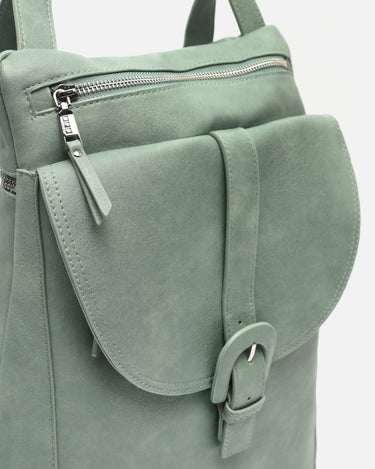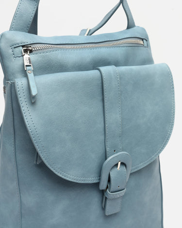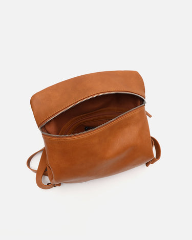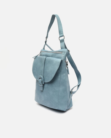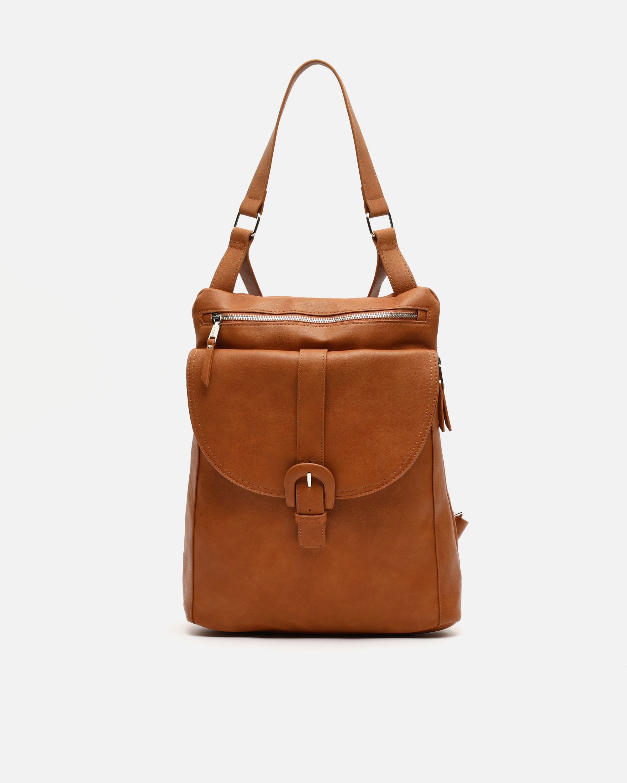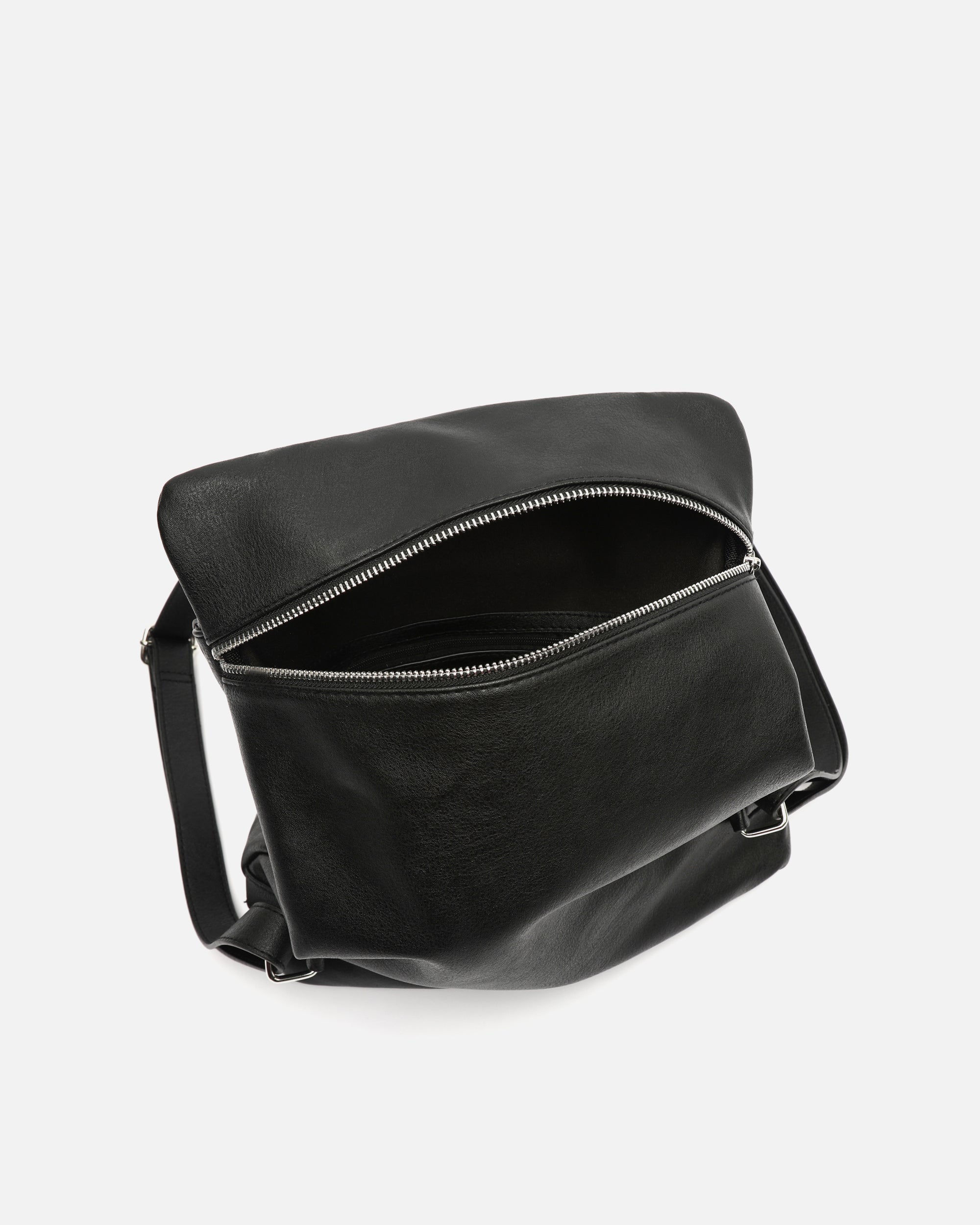 Confeccionada en tejido efecto piel suave al tacto, destaca por su solapa frontal curva, rematada con una tira y hebilla decorativa a tono que realza su diseño. Incorpora bolsillos estratégicamente ubicados, un práctico sistema de cierre dual y un bolsillo frontal oculto bajo la solapa con broche imantado que aporta un plus de seguridad.