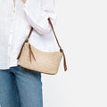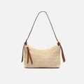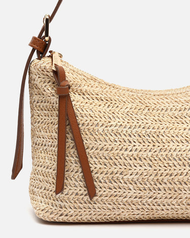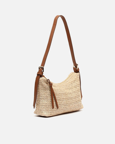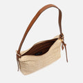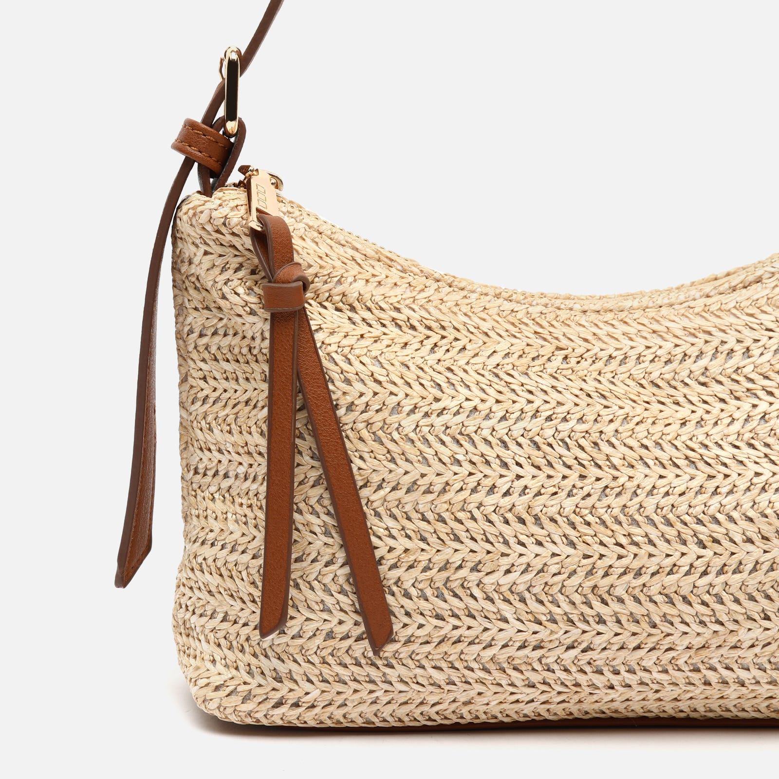 Este bolso baguette efecto rafia es el accesorio ideal para tus looks de verano, ya sea de día o de noche. Con un compartimento principal que incluye un bolsillo interior con cierre de cremallera, te proporciona espacio seguro y organizado para tus pertenencias esenciales. Su asa tipo cinturón regulable te permite llevarlo cómodamente cruzado sobre el cuerpo o colgado del hombro, añadiendo un toque de estilo único a tu outfit.
