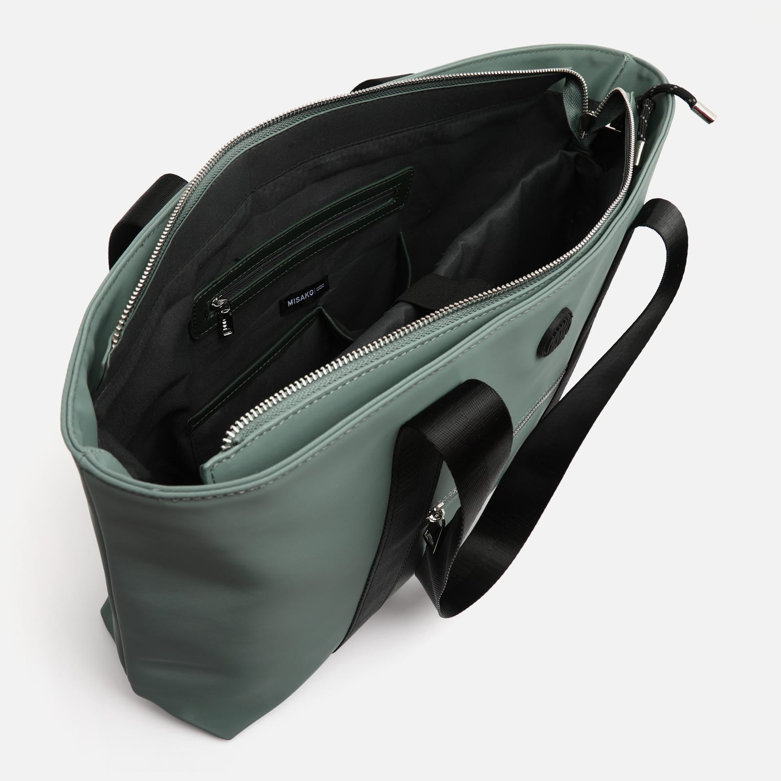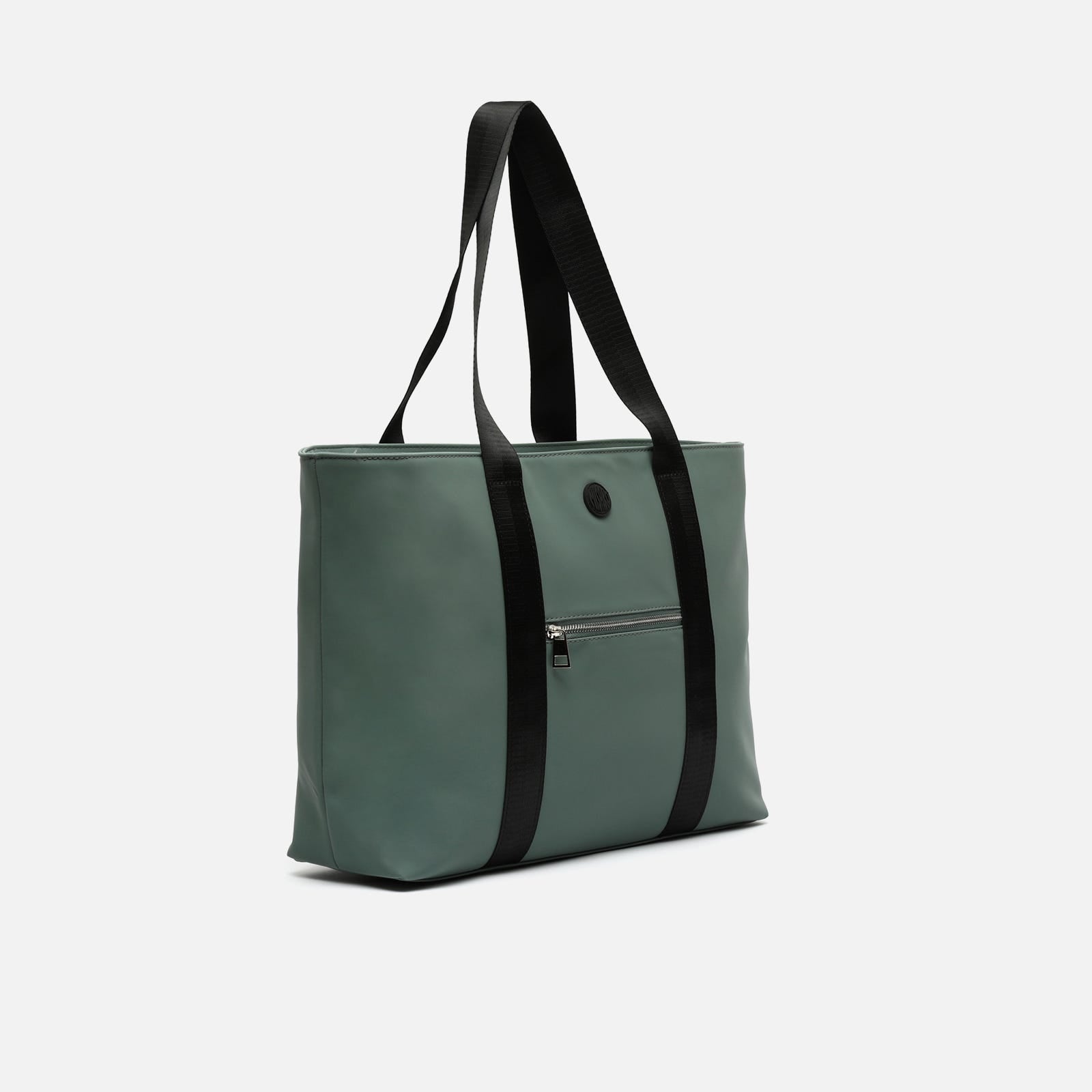 Versátil, leve e concebido para o acompanhar nas suas actividades diárias. Austeru é o saco de compras grande da Misako que redefine o conceito de saco de trabalho, universitário ou de ginásio. O seu exterior em nylon acetinado repele a chuva ligeira e mantém a estrutura sem aumentar o peso. As pegas em tecido preto são extremamente robustas e caem confortavelmente sobre o ombro e o fecho de correr superior mantém todos os seus pertences seguros. Se o exterior chama a atenção, o interior não fica atrás: possui um compartimento principal espaçoso e bolsos funcionais, incluindo uma bolsa almofadada para guardar o seu tablet e um bolso com fecho de correr perfeito para pequenos objectos de valor.