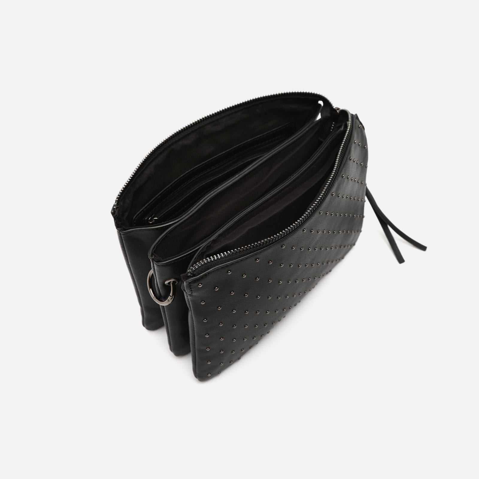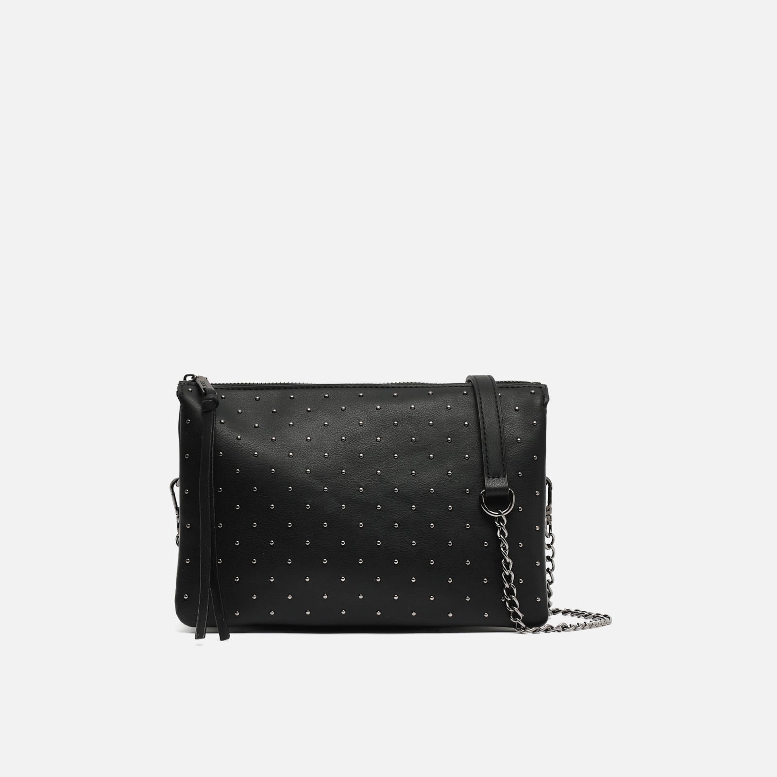 A mala a tiracolo Betsys da Misako é fabricada num efeito de pele macio e duradouro, que serve de base para as discretas tachas metálicas na aba, acrescentando um toque sofisticado e moderno.