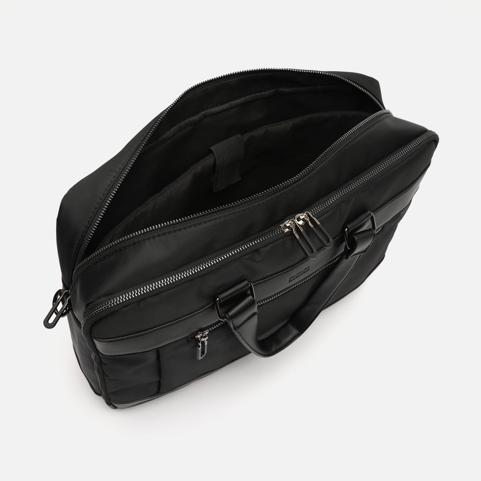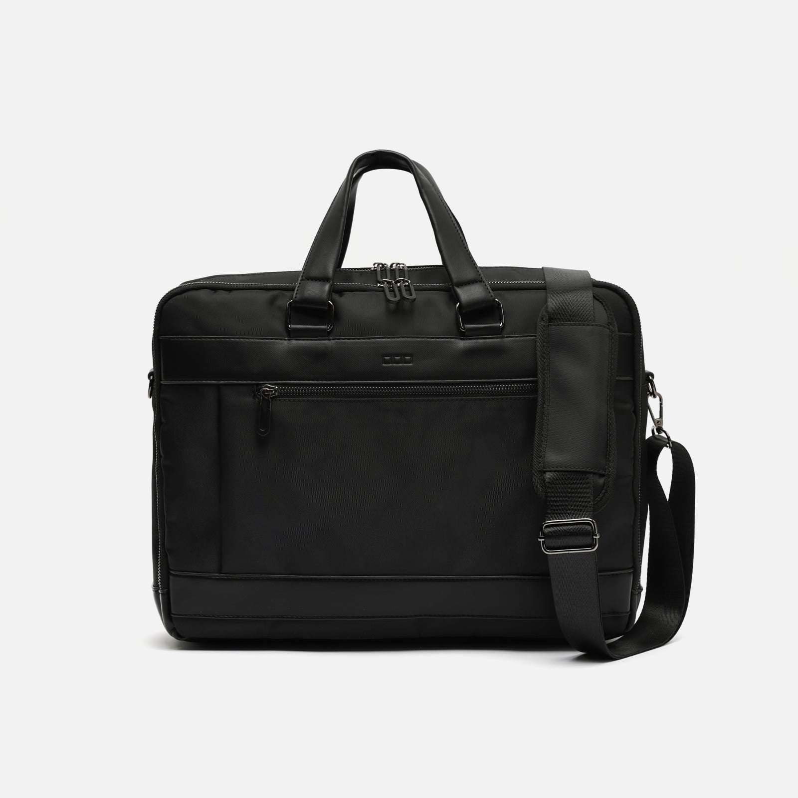 Possui um compartimento principal com fecho de correr e bolsos exteriores estrategicamente colocados, ideais para transportar carregadores, documentos, cabos ou dispositivos utilizados frequentemente.