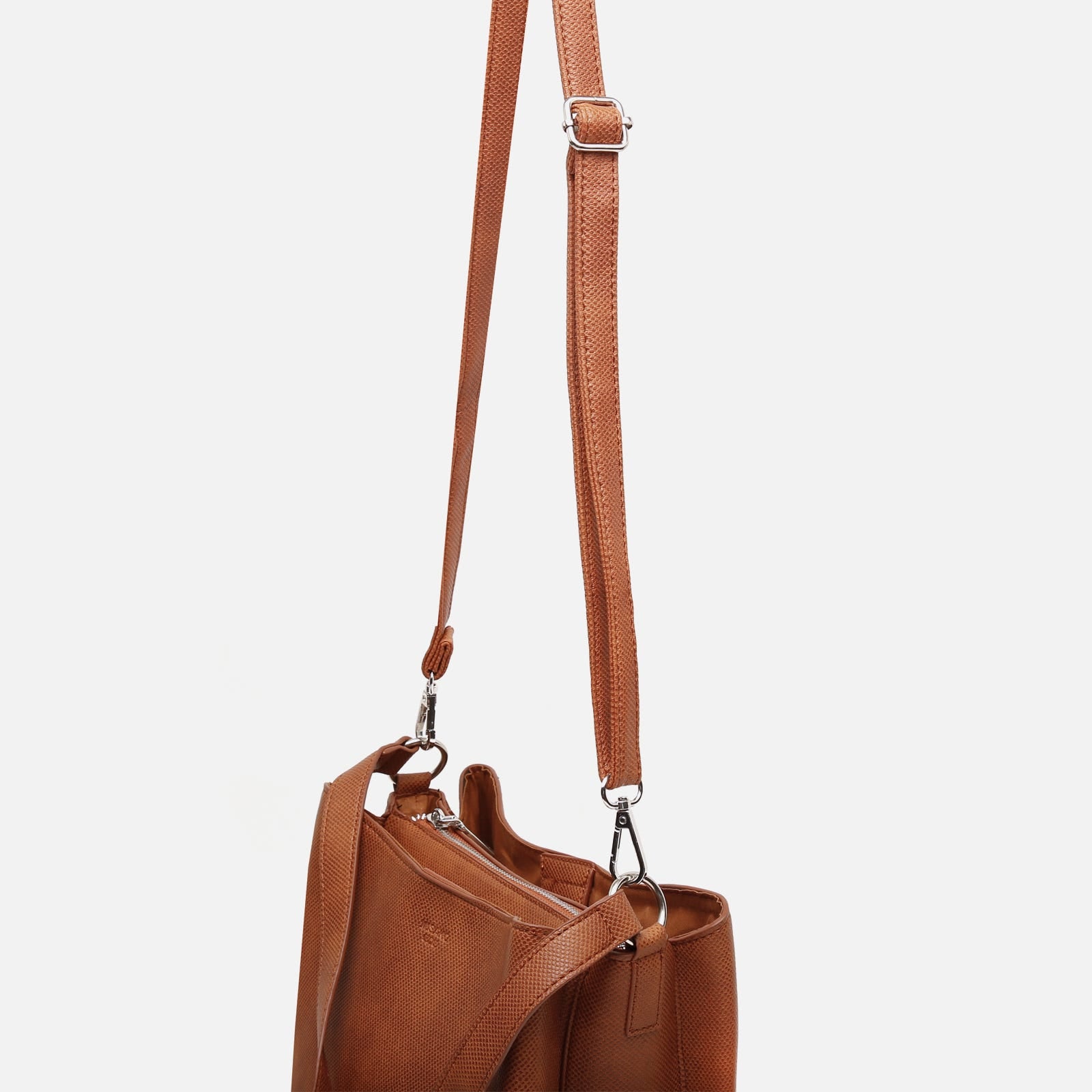 O Conti é um básico prático e elegante. Tem três bolsos espaçosos. Os laterais têm um fecho com clip magnético, enquanto o central tem um fecho com fecho de correr. Tem uma pega integrada para transportar o mala sobre o ombro e também inclui uma segunda pega ajustável com um clip de fixação, para lhe adicionar como quiser!