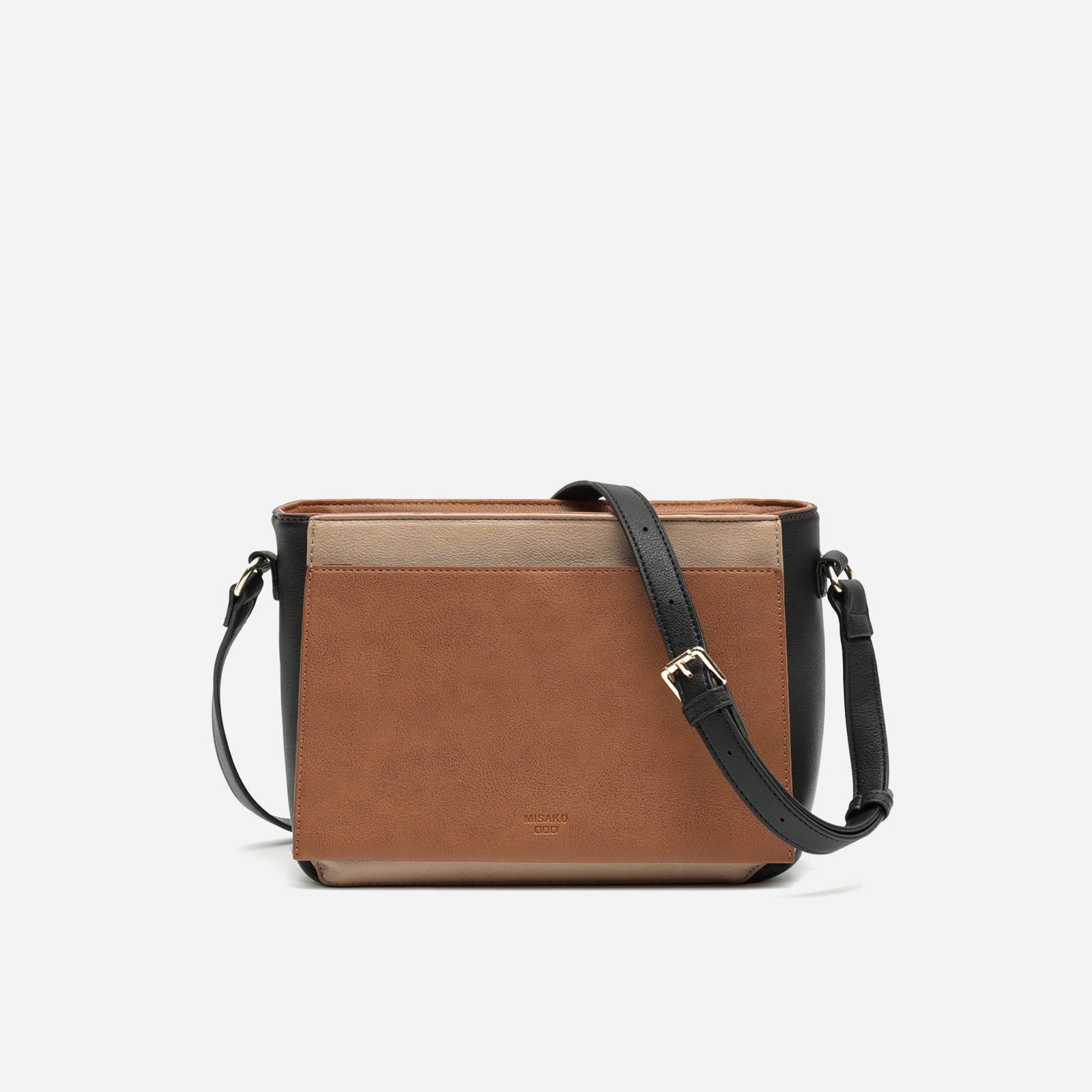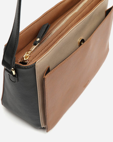 A mala a tiracolo Elea da Misako é o acessório ideal para a acompanhar com estilo durante a estação outono-inverno. O seu design em bloco de cores com efeito de pele e os elegantes tons de terra tornam-na indispensável em qualquer guarda-roupa, perfeita para dar o toque final a qualquer look casual ou smart-casual.