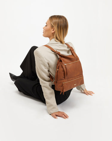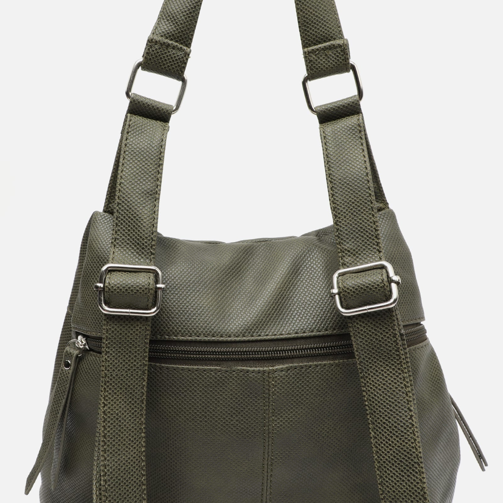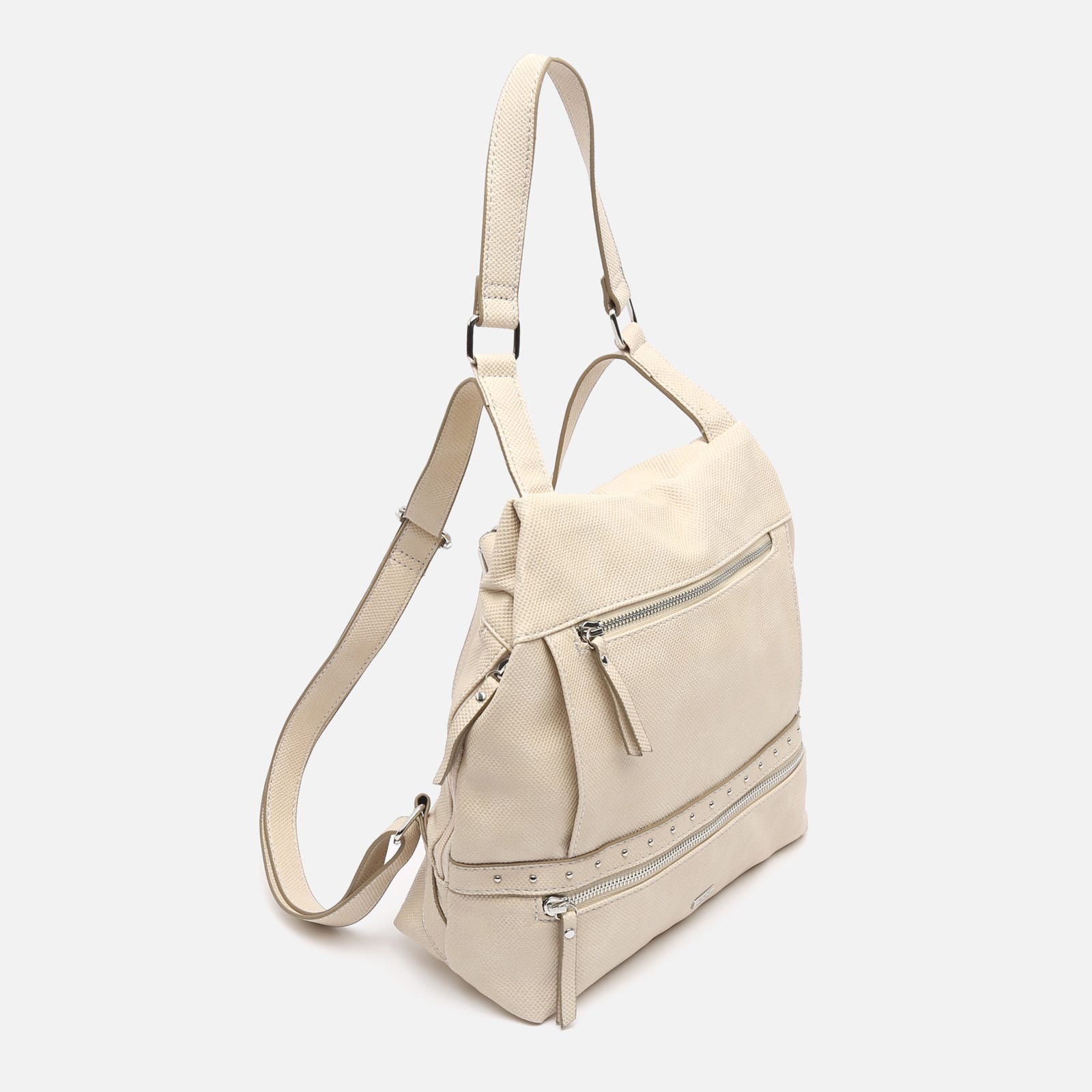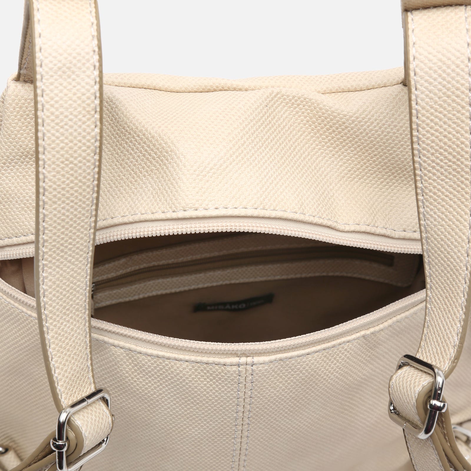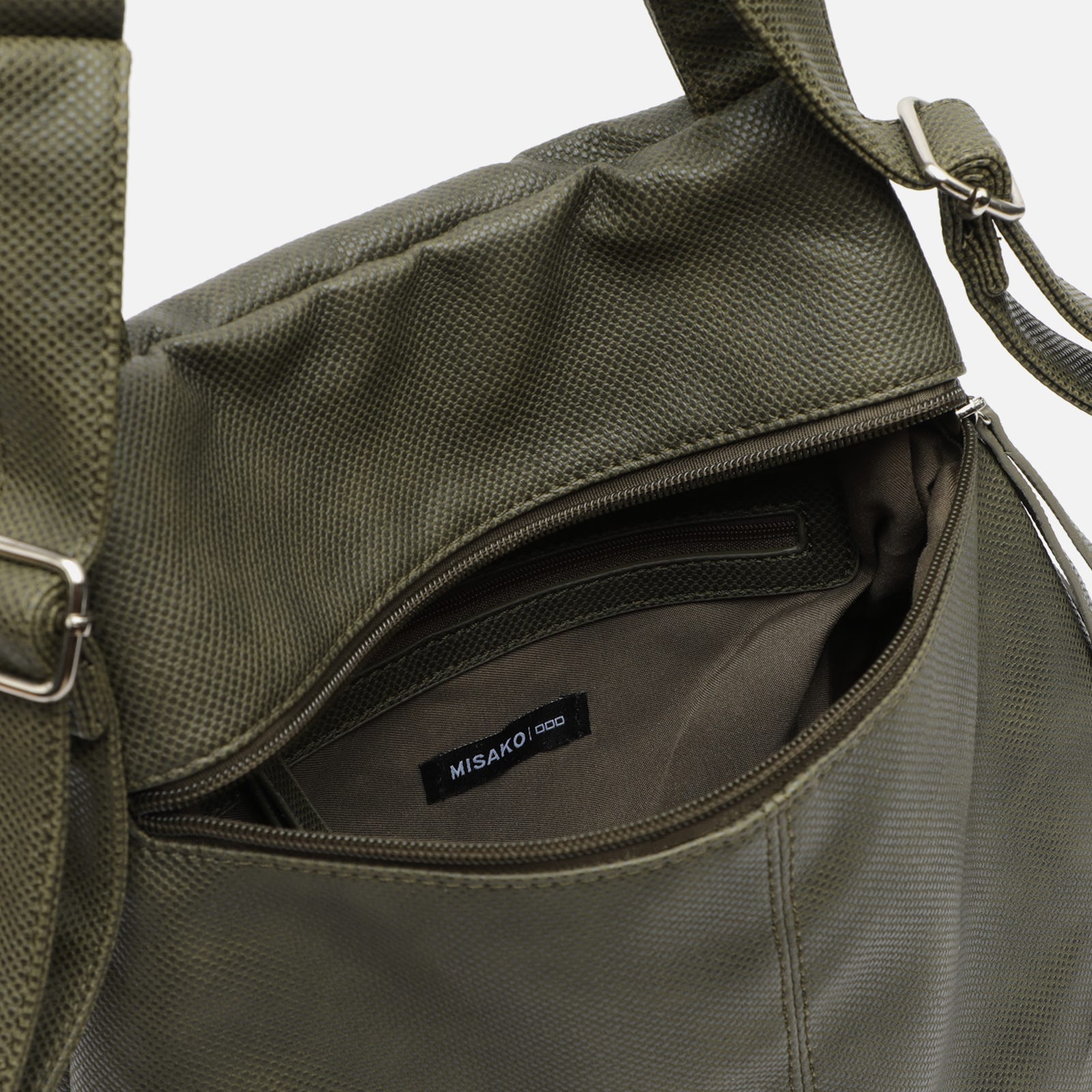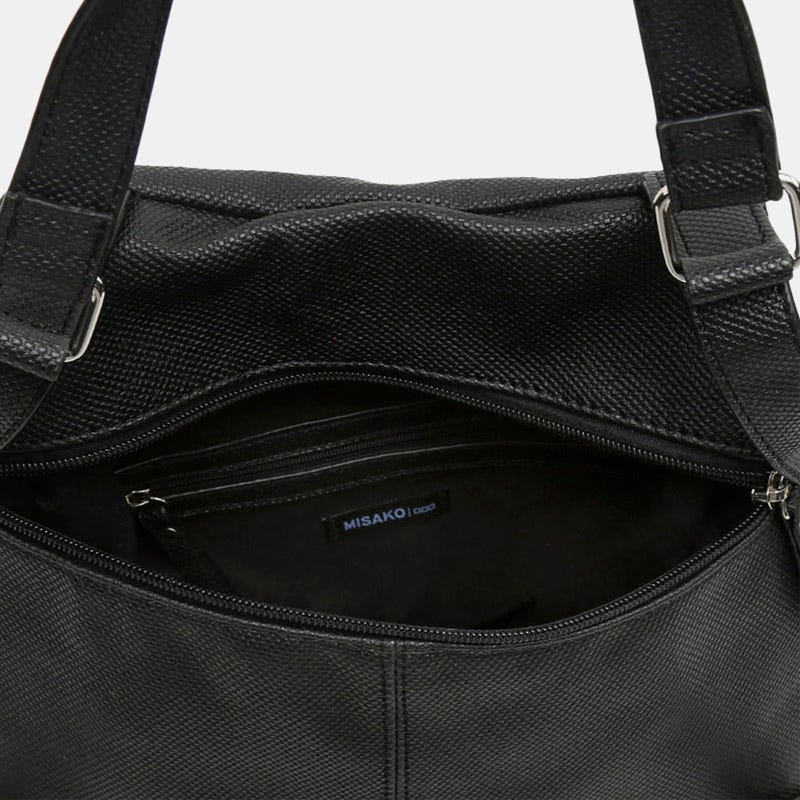 A mochila Engri da Misako oferece uma versão sofisticada das nossas icónicas mochilas antirroubo. Fabricada em couro sintético granulado, apresenta uma faixa decorativa com micro tachas prateadas ao longo da aba frontal. Ficará surpreendido com a sua grande capacidade de arrumação graças à sua distribuição inteligente do espaço: dois bolsos frontais, dois bolsos laterais com fechos metálicos, um compartimento interior para pequenos objectos e, na parte de trás, um bolso antirroubo para manter os seus pertences mais valiosos sempre protegidos.