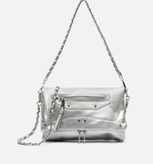 Mala de ombro pequeno com manípulo a tiracolo removível e detalhes metálicos