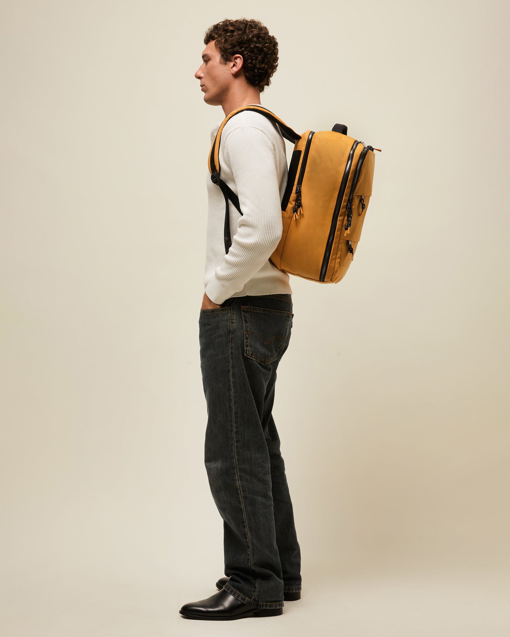 Esta mochila de trabalho para computador portátil combina um design minimalista com uma organização inteligente do espaço. Fabricada em nylon mate resistente, o seu tecido leve é repelente à água e oferece uma durabilidade excecional.