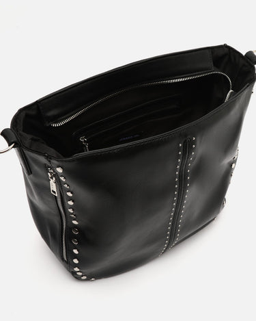 Jitan é um grande saco hobo de inspiração motard, ideal para um look casual e fresco.