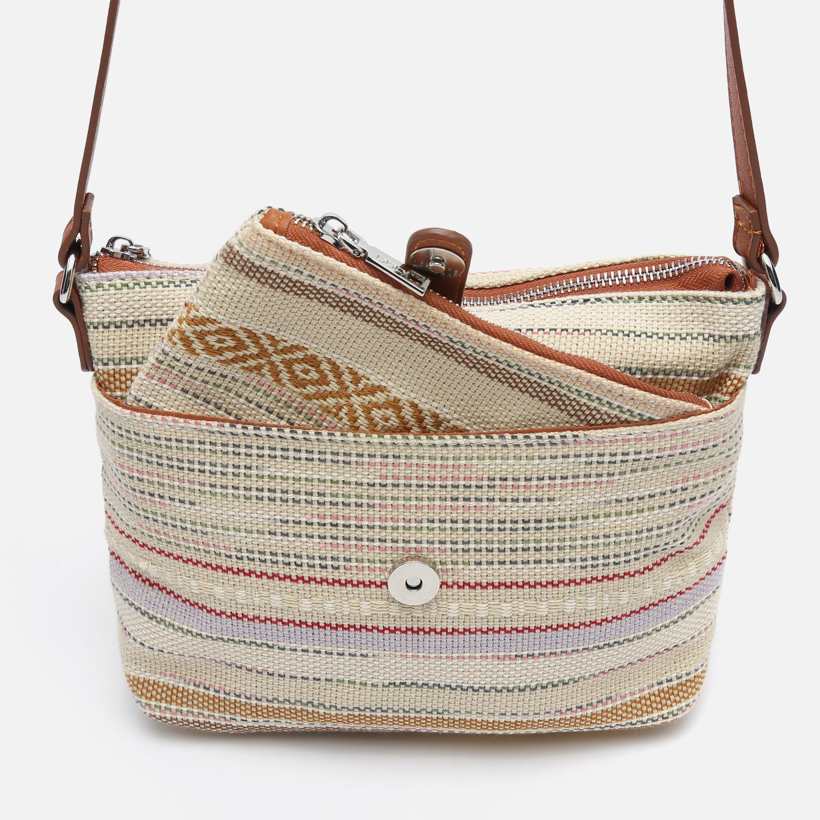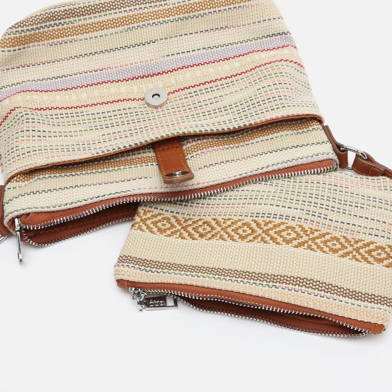 Mala a tiracolo com estampado jacquard e neceser pequeno