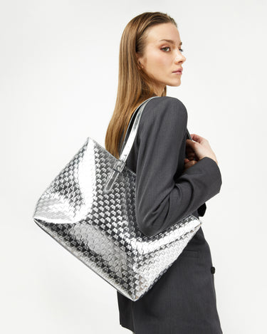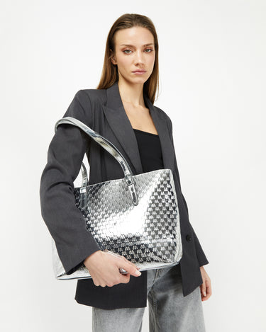Muito mais do que uma bolsa: Misrine da MIsako é o acessório que vai transformar e dar brilho ao seu look. É uma bolsa grande que chama a atenção graças ao seu acabamento chamativo. O seu design destaca-se pelo monograma Misako em relevo sobre uma superfície com efeito metalizado, que confere sofisticação.
