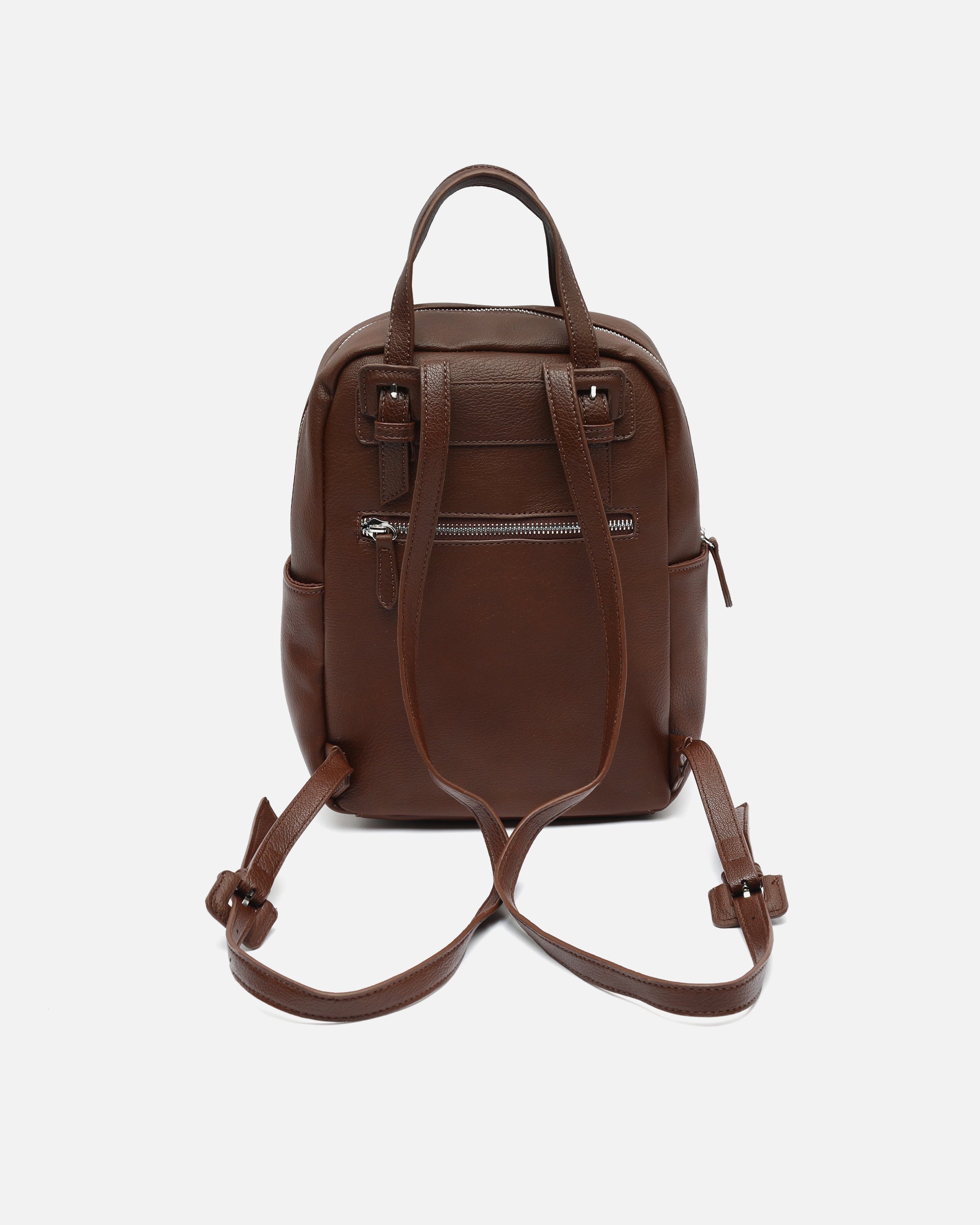 A Nasia, a mochila da Misako, é confeccionada num elegante efeito pele de alta qualidade, em tons sóbrios que realçam o seu caráter. A sua estrutura incorpora fechos metálicos resistentes e uma distribuição inteligente do espaço graças aos seus múltiplos bolsos laterais e frontais exteriores, perfeitos para manter tudo em ordem, além de um bolso traseiro adicional com função antirroubo, ideal para guardar os seus artigos mais valiosos.