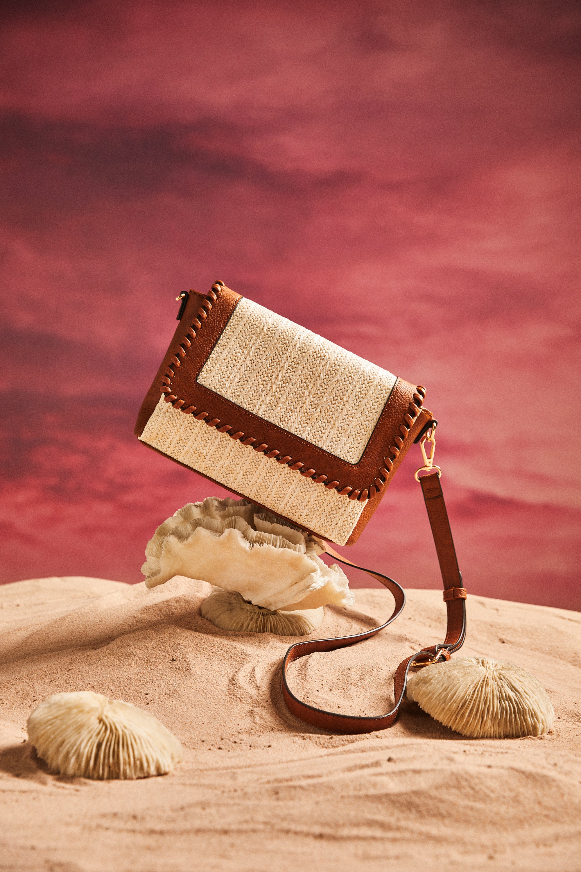 Esta pequena mala de ombro com efeito ráfia é perfeita para passeios casuais com um toque de estilo de verão. Possui um compartimento principal que inclui um bolso interior com fecho de correr para manter os seus pertences organizados e seguros. O fecho de aba com botões magnéticos garante um acesso rápido e cómodo aos seus objectos, acrescentando um toque de elegância. Possui também uma alça de ombro ajustável e amovível para que possa transportá-la confortavelmente da forma que preferir. Um acessório ideal para os seus looks de primavera/verão.