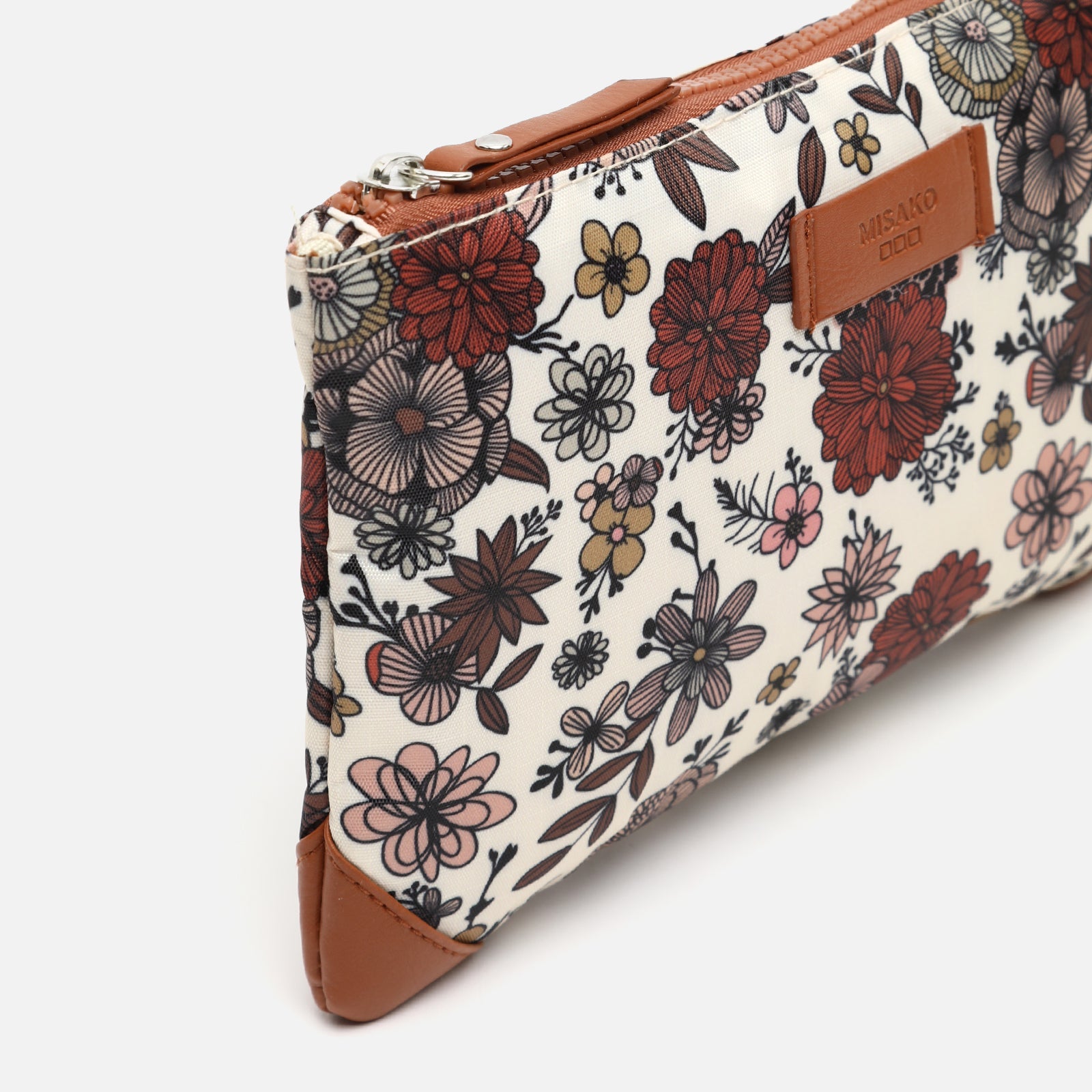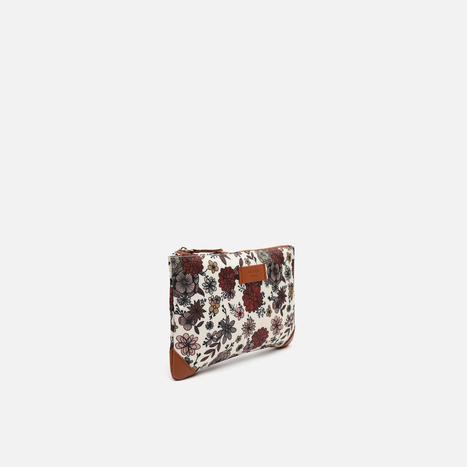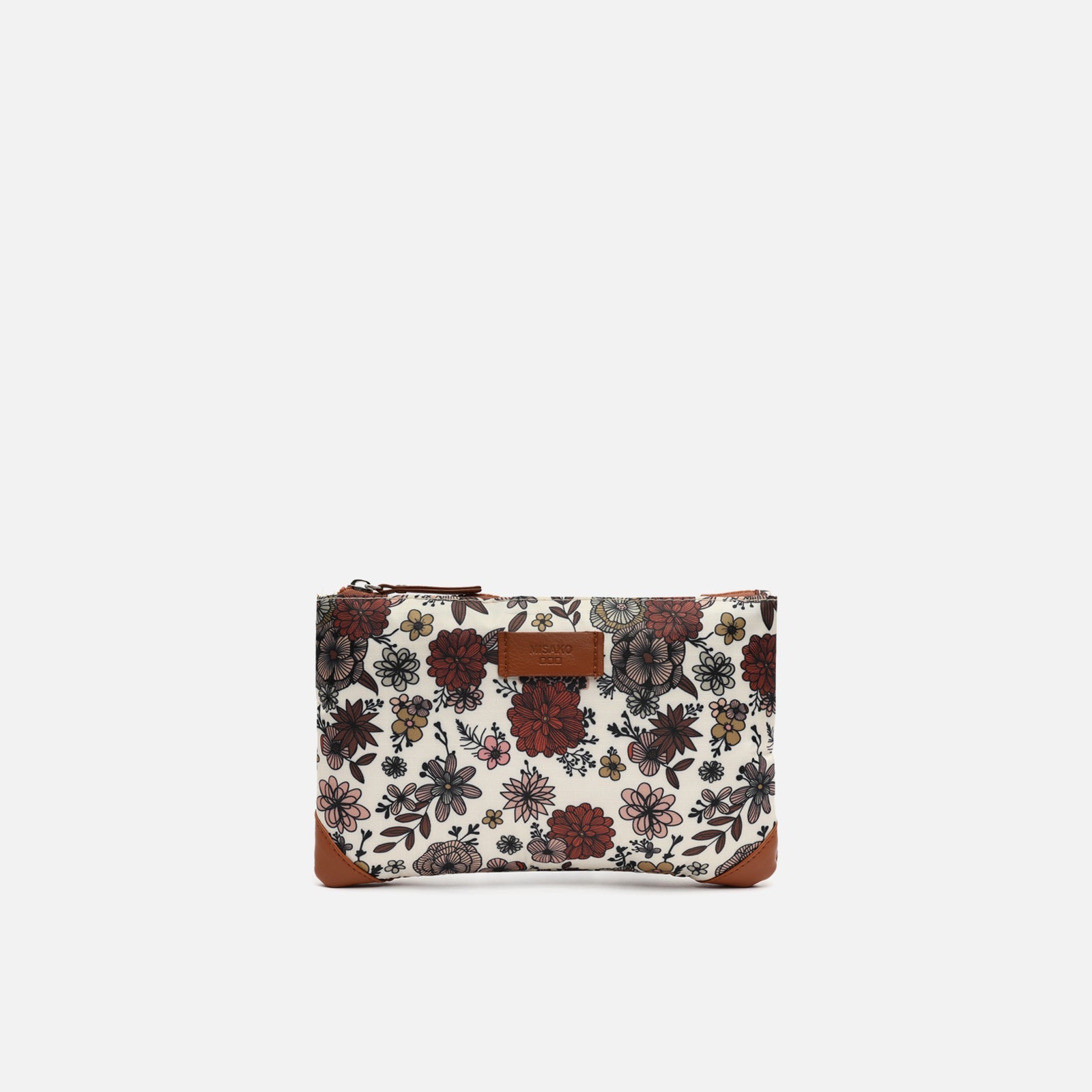 O seu design floral em tons terra com delicados toques de rosa transmite uma estética subtil e sofisticada. Fabricado num tecido resistente e suave ao toque, com detalhes contrastantes em pele, este saco de toilette combina funcionalidade e elegância para proteger os seus cosméticos e artigos pessoais.