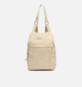 Funcional e naturalmente elegante, a mochila antirroubo Misako Novil foi concebida para o manter seguro e protegido nas suas actividades diárias. Com uma silhueta ergonómica com efeito de couro, é confortável tanto para viagens curtas como longas, graças às suas alças multi-posições, que permitem transportá-la às costas para melhor distribuir a carga, ou na mão como mala de mão. Na parte da frente, encontra dois bolsos com fecho: um central e um bolso lateral mais discreto. Na parte de trás, o acesso ao compartimento principal com fecho protege os seus objectos de valor, complementado por um bolso traseiro com fecho para manter os seus objectos essenciais sempre à mão.