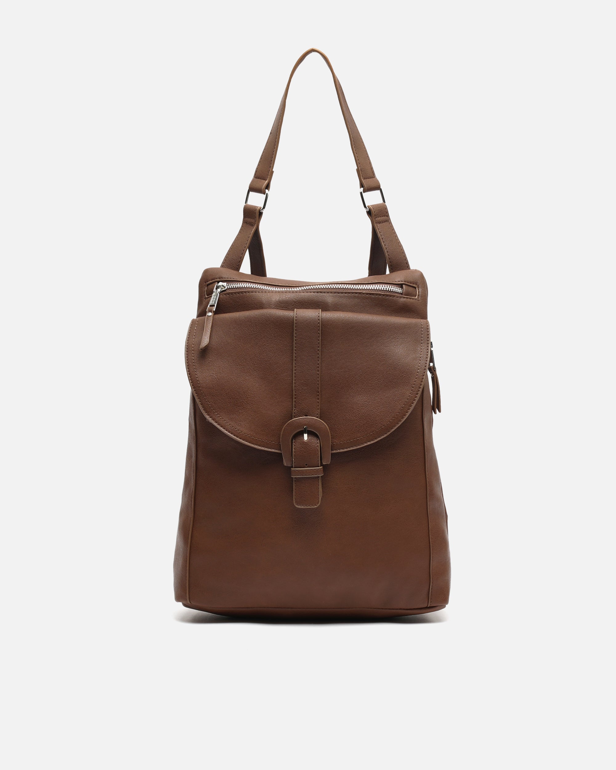 Fabricada em tecido de toque suave com efeito de pele, apresenta uma aba frontal curva, com uma alça decorativa tom sobre tom e uma fivela que realça o seu design. Possui bolsos estrategicamente colocados, um prático sistema de fecho duplo e um bolso frontal oculto sob a aba com um fecho magnético para maior segurança.