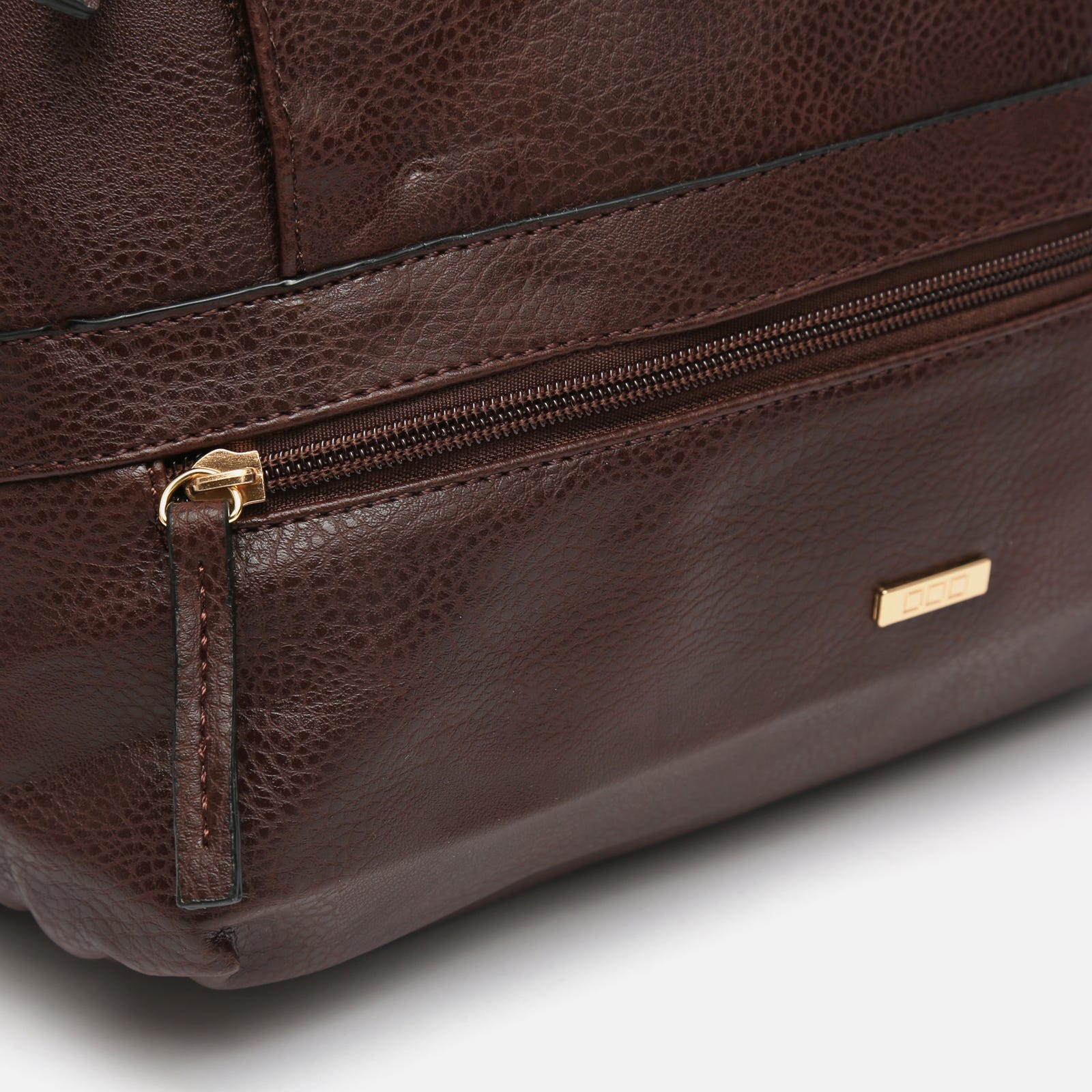 - Pegas em pele com ferragens metálicas.