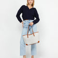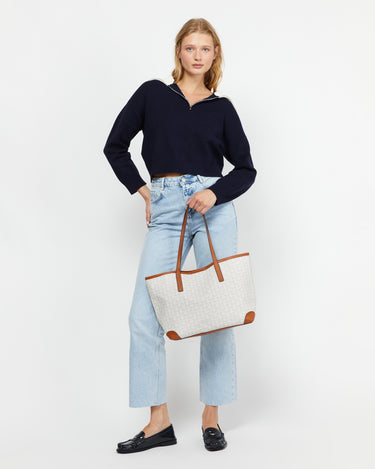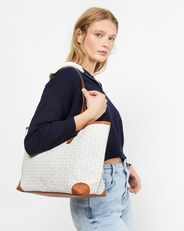 Tile mala shopper com bolso interior e estampa monograma da Misako